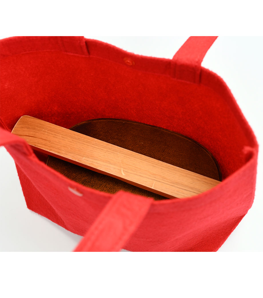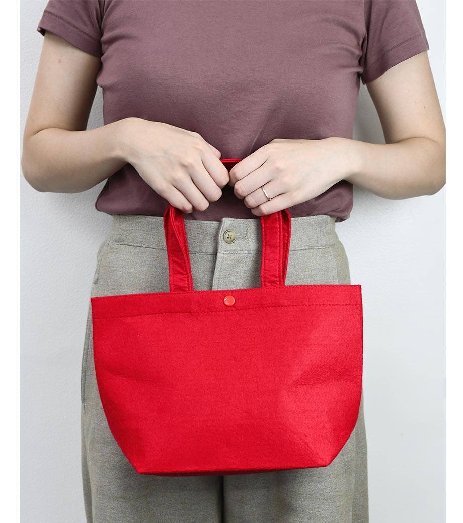 フェルトバッグ トートSはランチトートにぴったりなサイズ。温もりを感じられるフェルト素材の優しい風合いが魅力です。プラホック付なのでバッグの中が見えないのもうれしいポイント。財布と携帯電話だけ入れてちょっとした買い物にも便利ですよ。