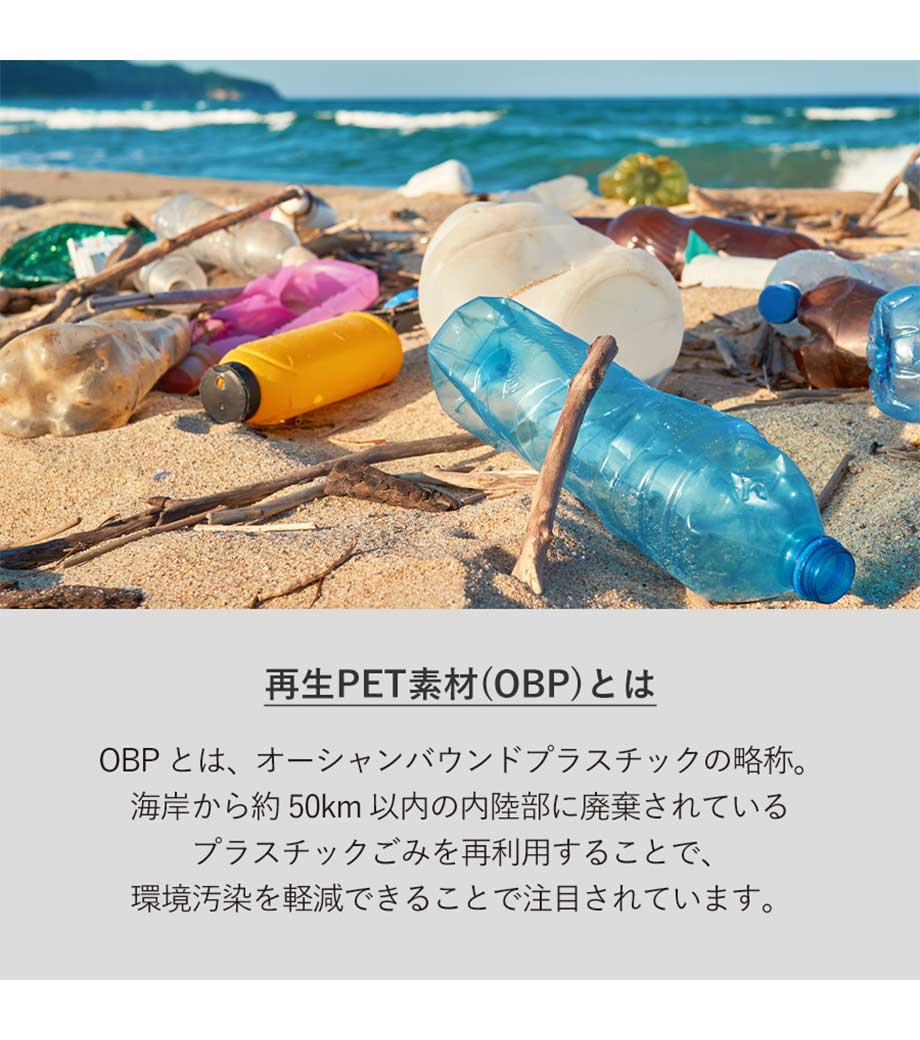 オーシャンバウンドプラスチックの略称で、海岸から約50km以内の内陸部に廃棄されているプラスチックのこと。