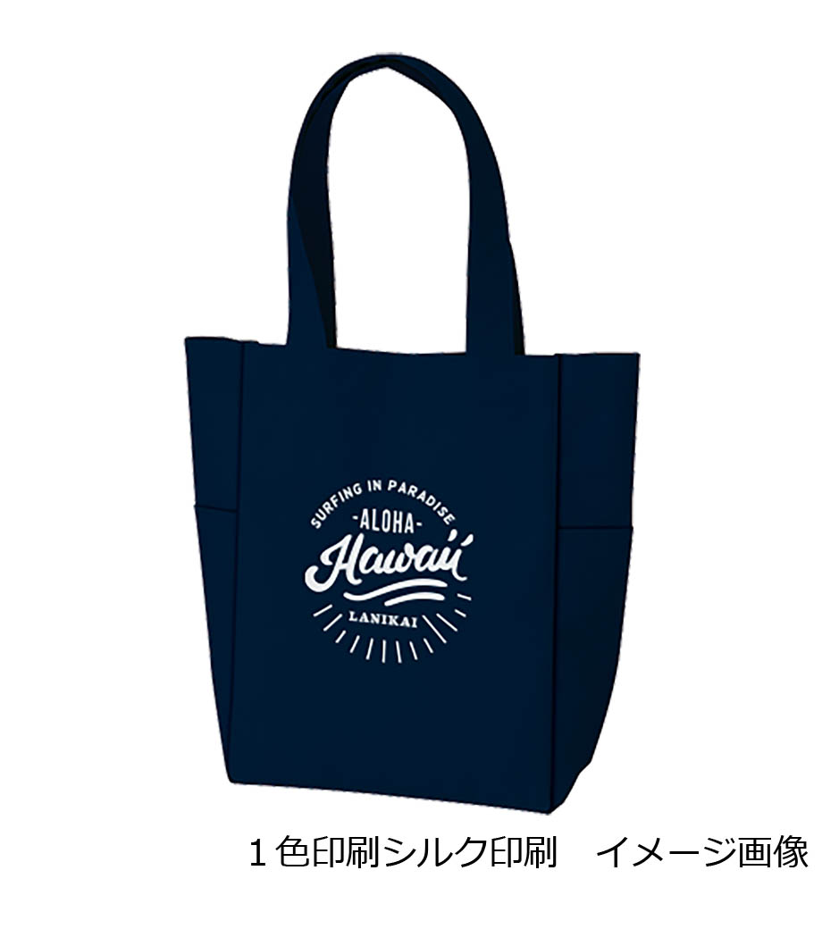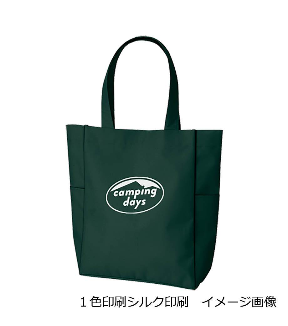 オリジナルの名入れプリントができるポリエステルトートバッグ ポケット付を取り揃えました。小ロットからご注文可能です。年代問わず喜ばれるので、ノベルティ・記念品にピッタリです。