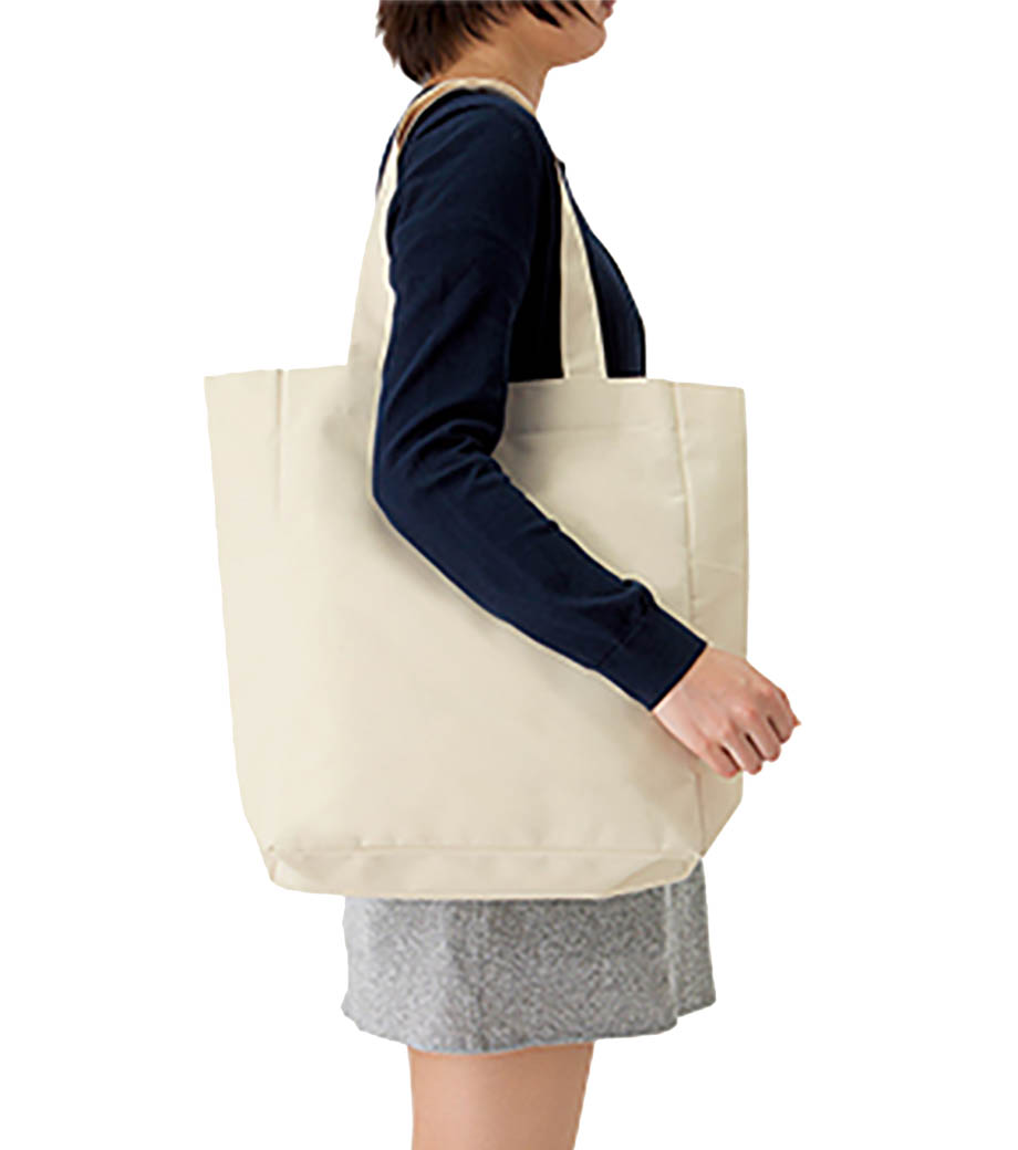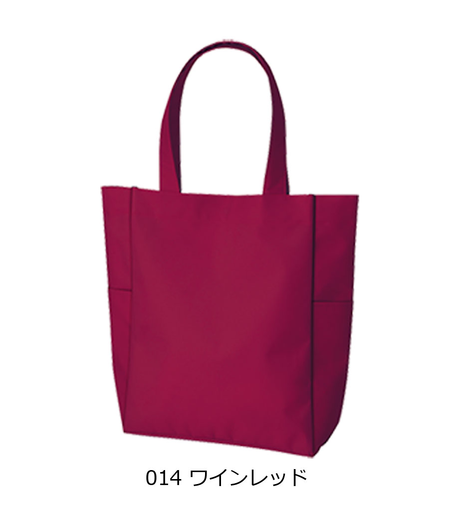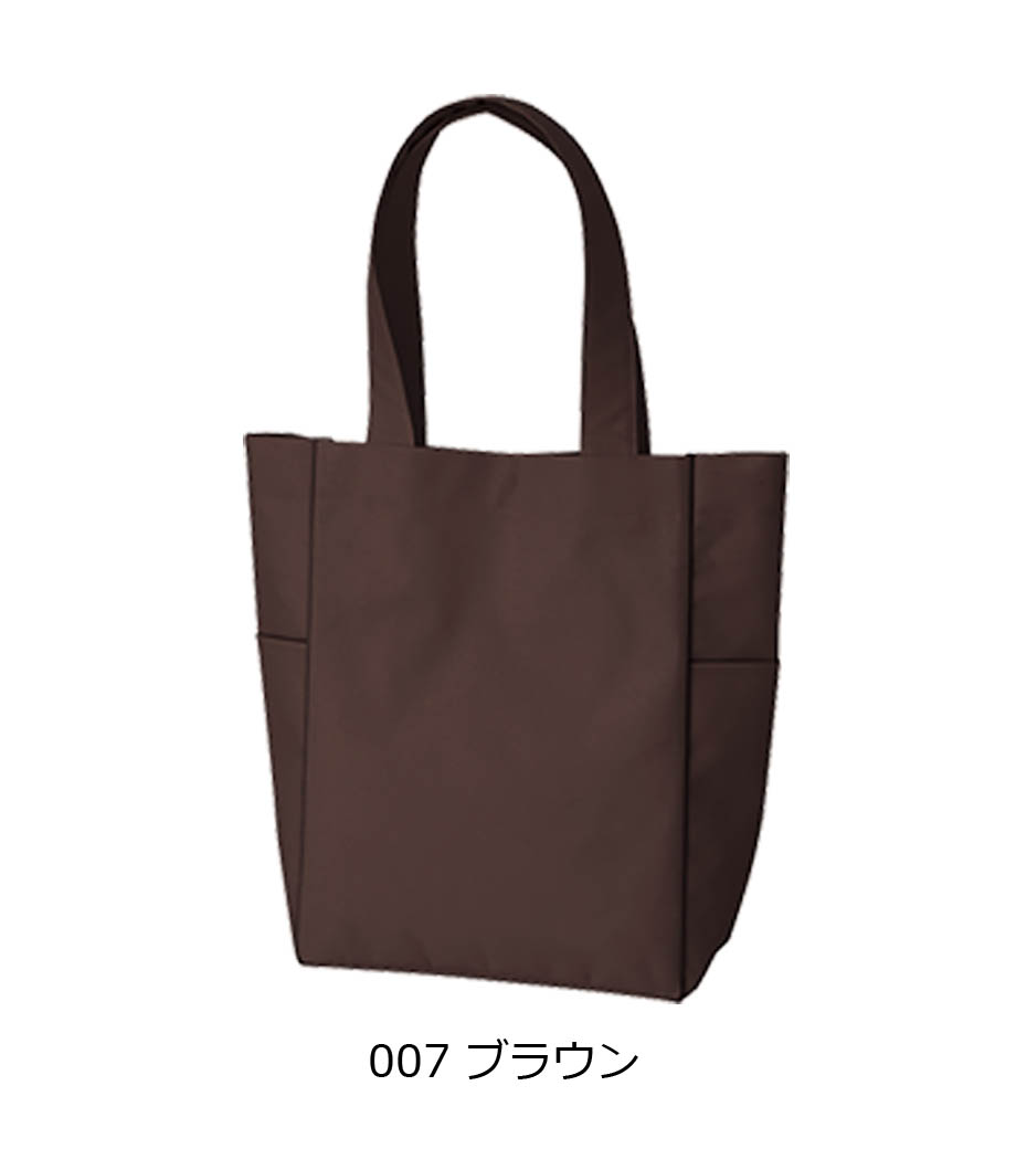 「コンビカラートート」はマチが広くしっかり生地のポリエステルバッグです。収容容量も大きく、サイドの収納ポケットに折りたたみ傘やペットボトルも収容可能です。