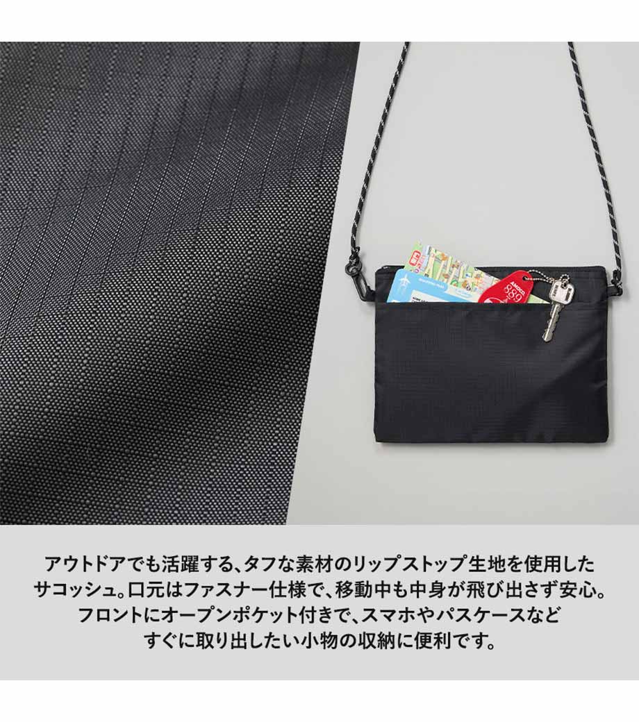 デイリーサコッシュは、口元ファスナー開閉・小物の収納に便利なメッシュ生地の外ポケット付きなので、サイクリングなどのアウトドアにおススメ。旅行の際の荷物整理にも使えるシンプル&スマートなデザインのサコッシュです。