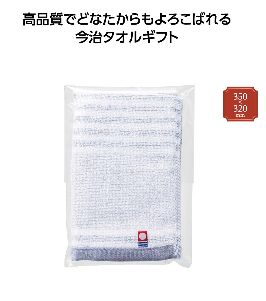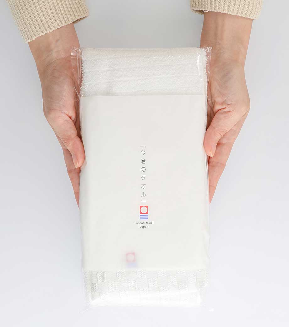 イベントやキャンペーンで来場者に配布したり、営業訪問時の粗品としてお渡しするのにぴったり。今治ブランドの認定マークが見える透明袋に入れてお届けします。