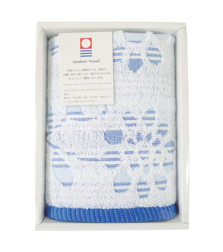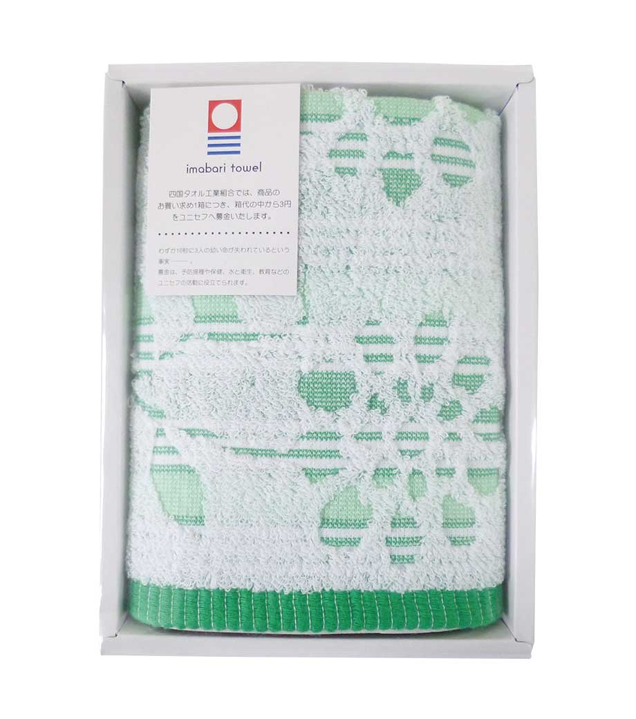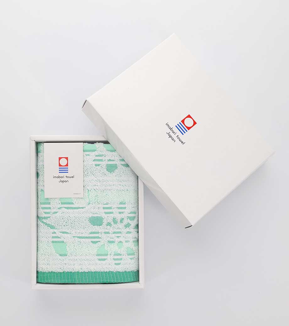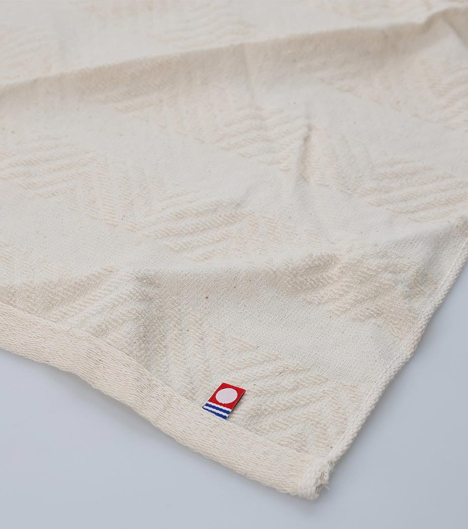四国・愛媛県の名産今治タオルの確かな品質を感じられる一枚です。日本の伝統文様である麻の葉柄で、魔除けや成長を願う意味を持つため贈り物にも最適。