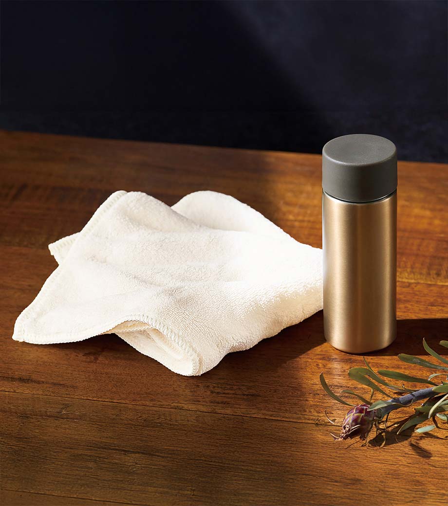 タオルは環境に配慮したオーガニックコットンを使用し、ふんわりとしたやさしい触れ心地が特徴。日常使いはもちろん忙しい毎日の小さな癒しとしても活躍します。