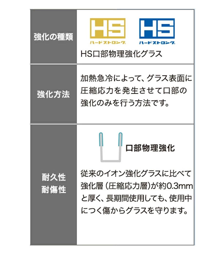 傷に強い安心品質のシンプルグラス