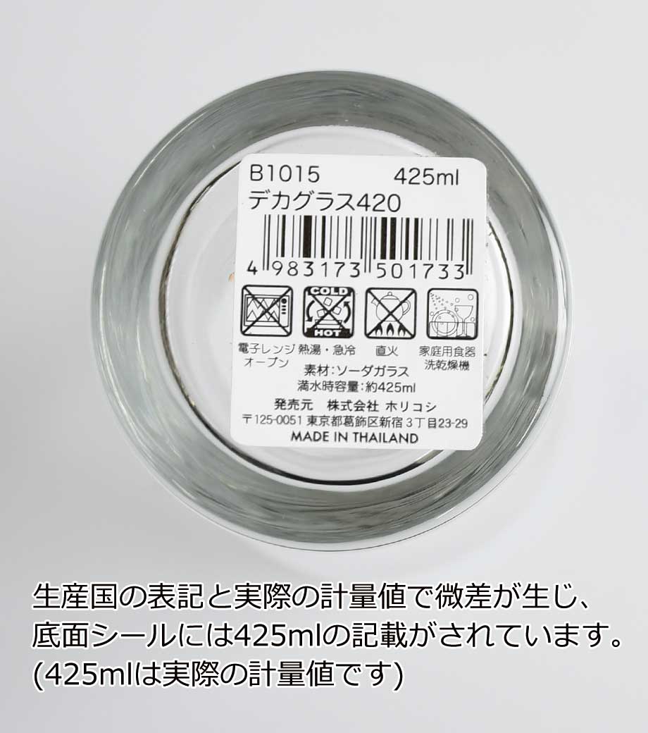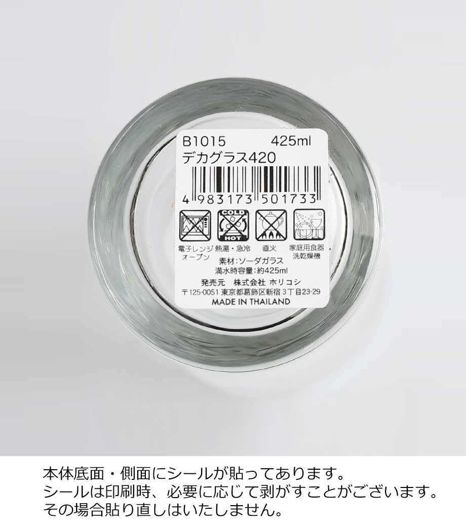 デカビアグラス 420ml(クリア)は泡を含めた350mlのビール缶1本分が入る大容量のビアグラス。飲み口が広く持ちやすい形状で、ビール以外のソフトドリンク用としてもおススメです。