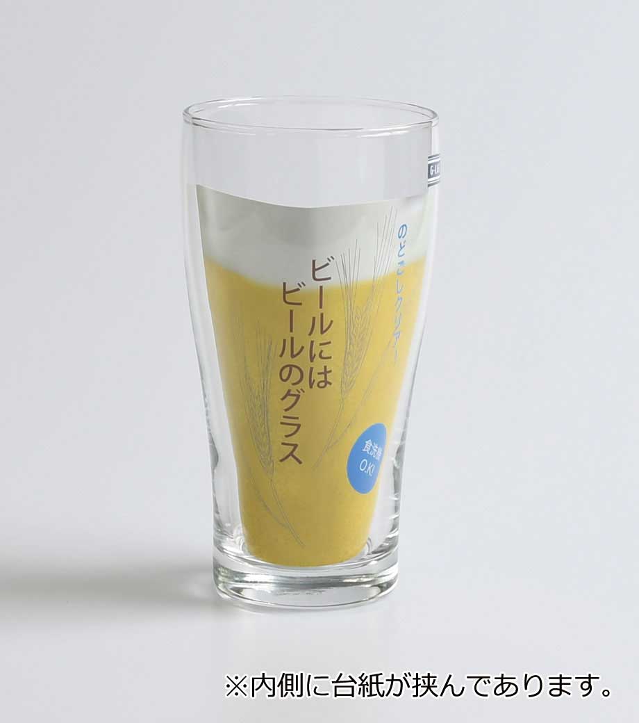 名入れが映えるシンプルなデザイン。グラスの側面にパッド1色でワンポイント印刷できます。ロゴを印刷してオリジナルのビアグラスの作成に。飲食店のオリジナルグラスや、企業の周年記念品、ファンクラブグッズなど幅広いシーンで人気です。