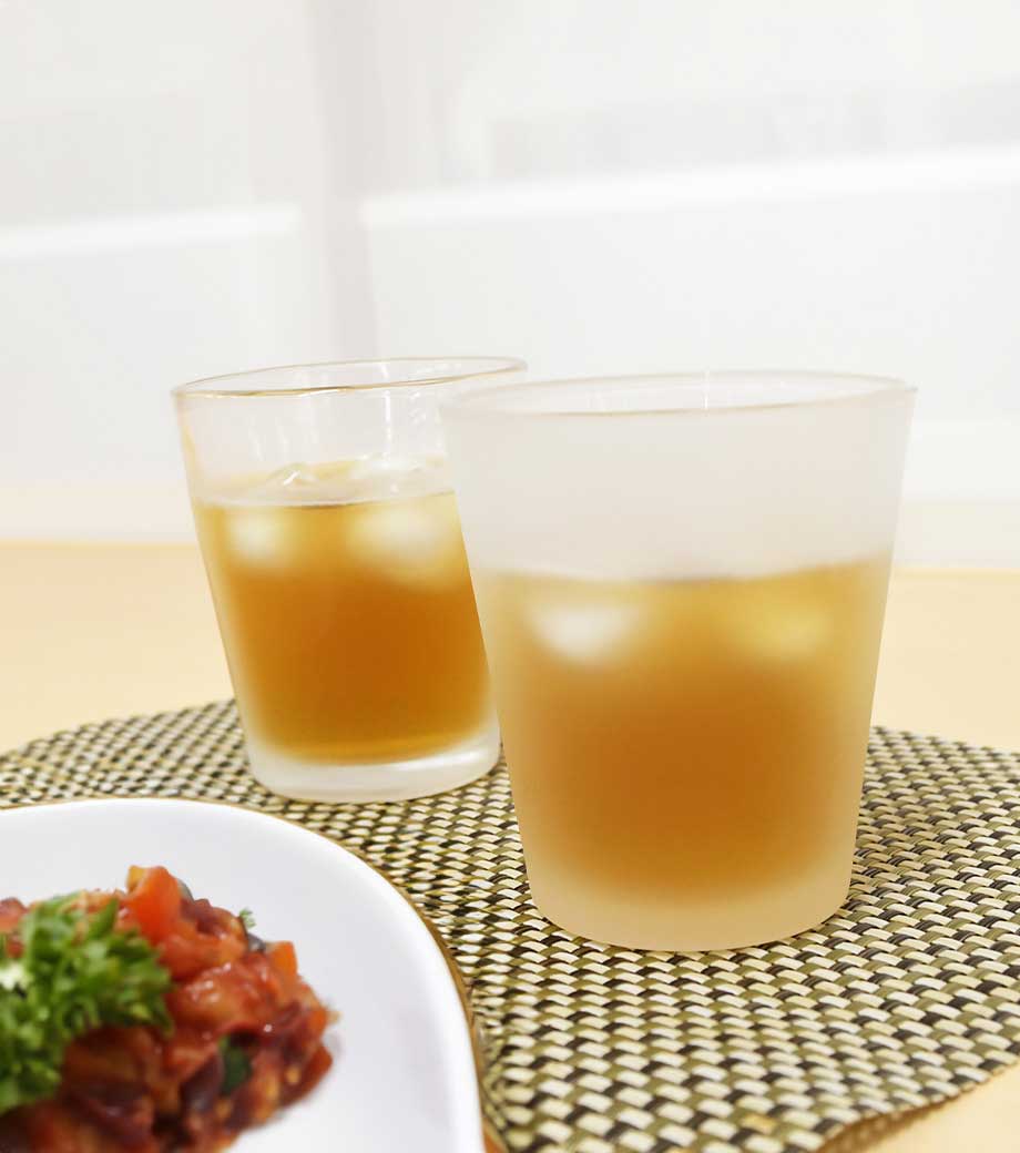 容量は約330mlで缶ジュース1本程度。飲み口が広く大きめの氷を入れやすいのも特徴です。中身が透けて見えるクリアタイプ、すりガラスのような質感が楽しめるフロストタイプからお選びください。
