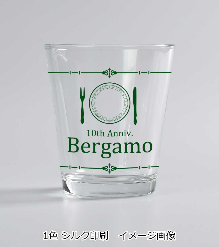 1色印刷で名入れが可能。お店のロゴを入れて、カフェやビストロなどのオリジナルグラスにぴったりです。