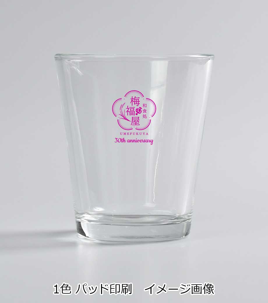 容量は約315mlと飲み切りに丁度良いサイズ。1色印刷でお店のロゴを入れて、オリジナル感の高いグラスを作成できます。
