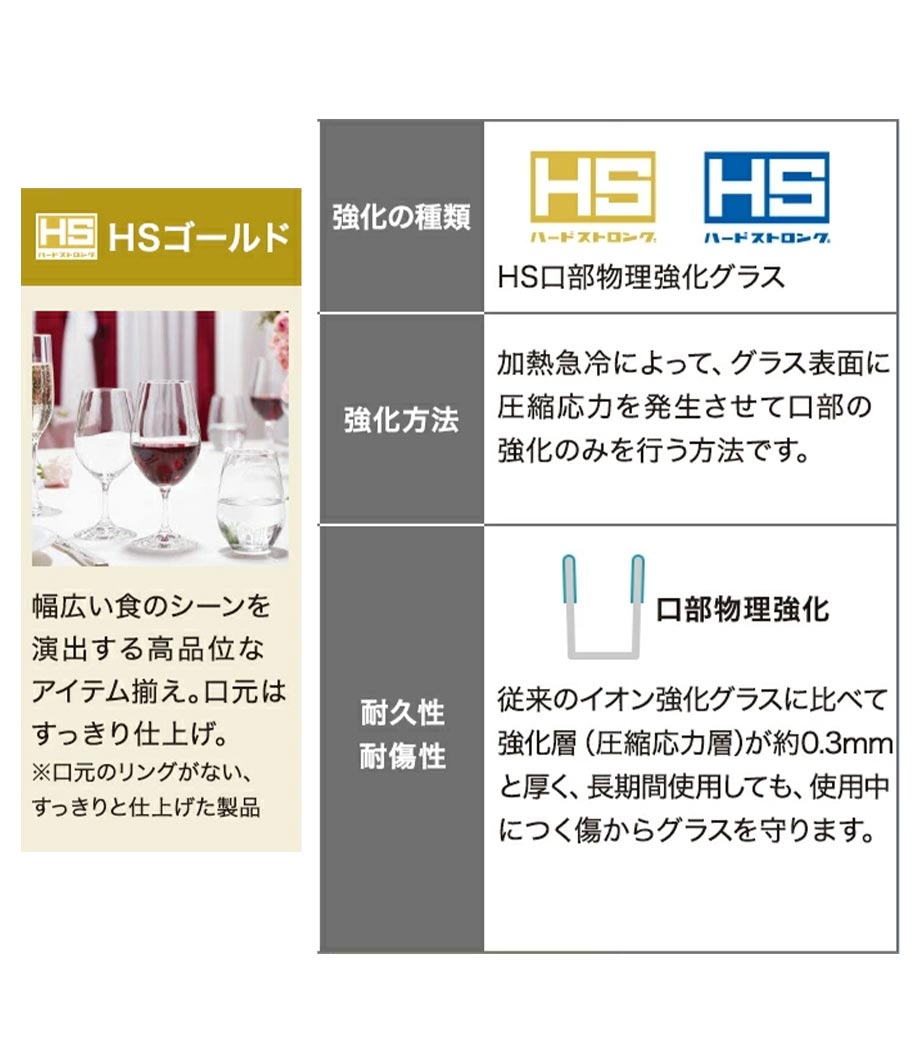 「口部強化加工」により、長期間使用しても傷が付きにくいシンプルなグラスです。なめらかな口当たりの仕上がりで、飲み物をしっかり味わえます。氷を入れてもちょうどいい容量305mlです。食洗機対応でお手入れも簡単。幅広い年代の人が使いやすく実用性の高い日本製の商品です。