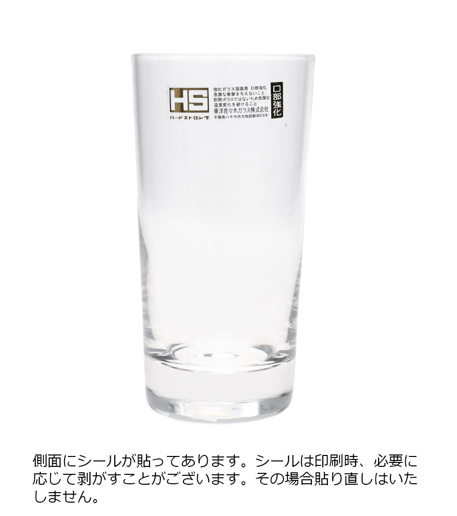ワンポイントか広範囲に1色印刷が可能で、ロゴや施設名を入れたオリジナルグラスが作成できます。カフェやバーのドリンク用、宿泊施設の備え付け用などにおすすめです。