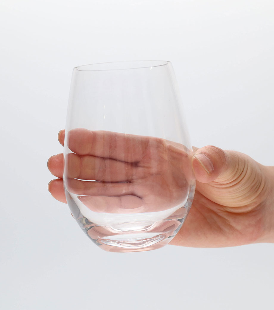 たっぷり容量約490mlのグラスです。コロンと丸いフォルムで大き目ながら手になじみやすい。ガラスが薄く軽やかなフォルムが特徴です。シンプルながら洗練されたデザインでグッドデザイン賞を受賞しています。