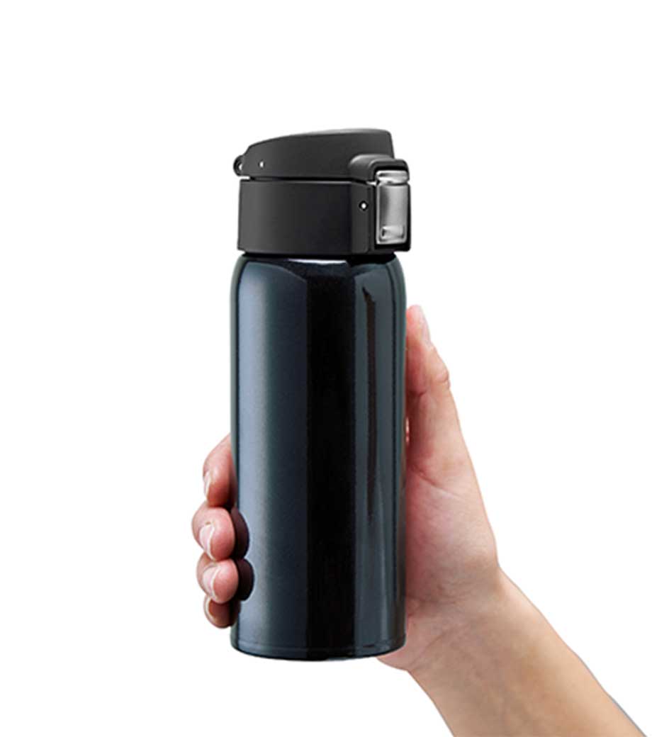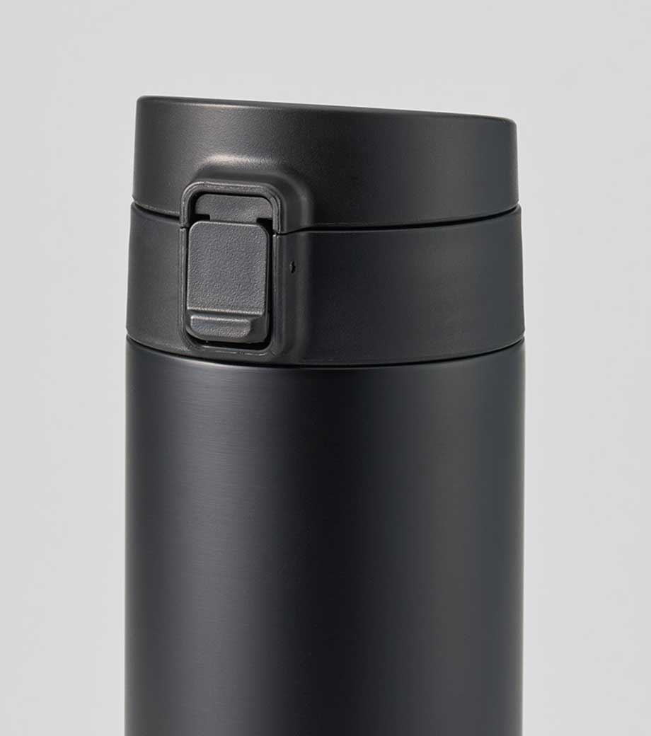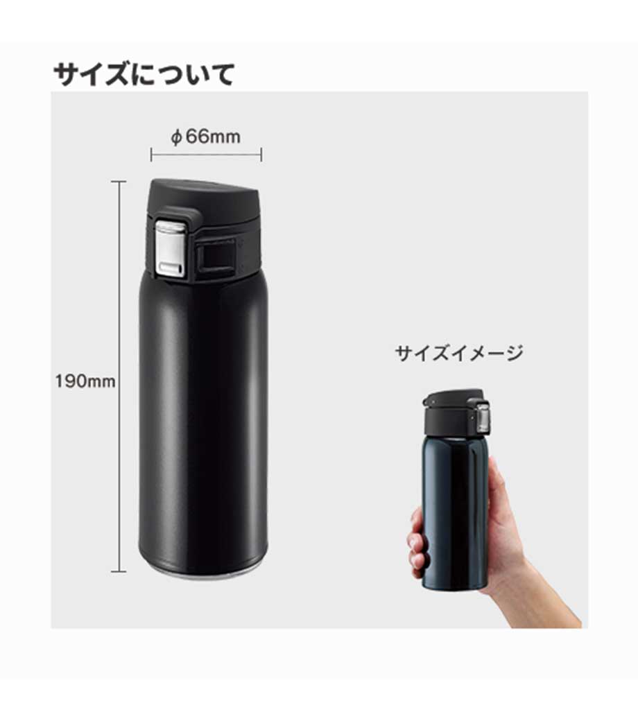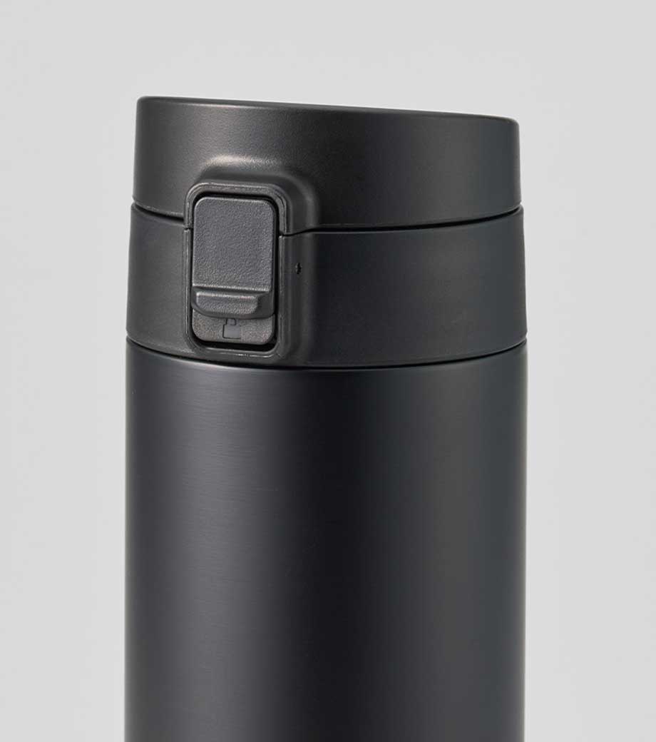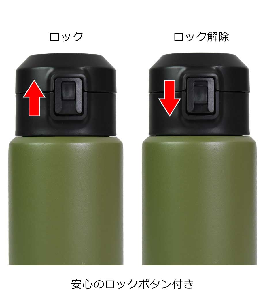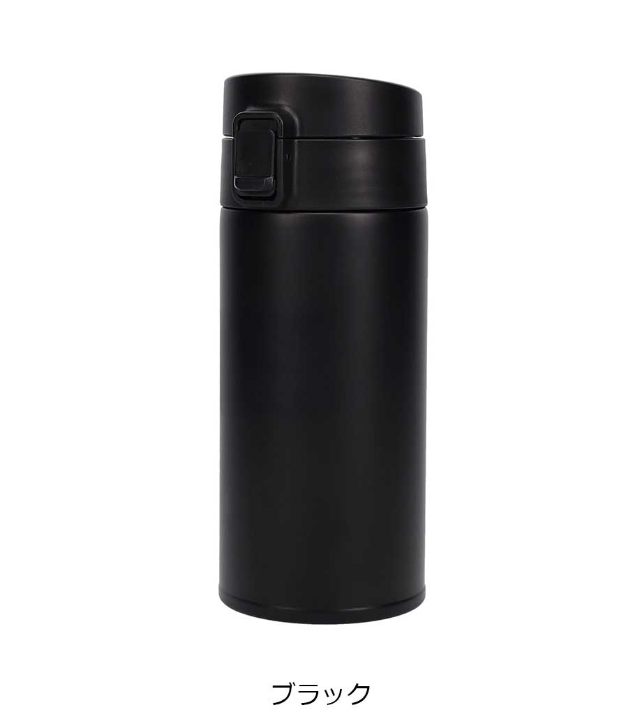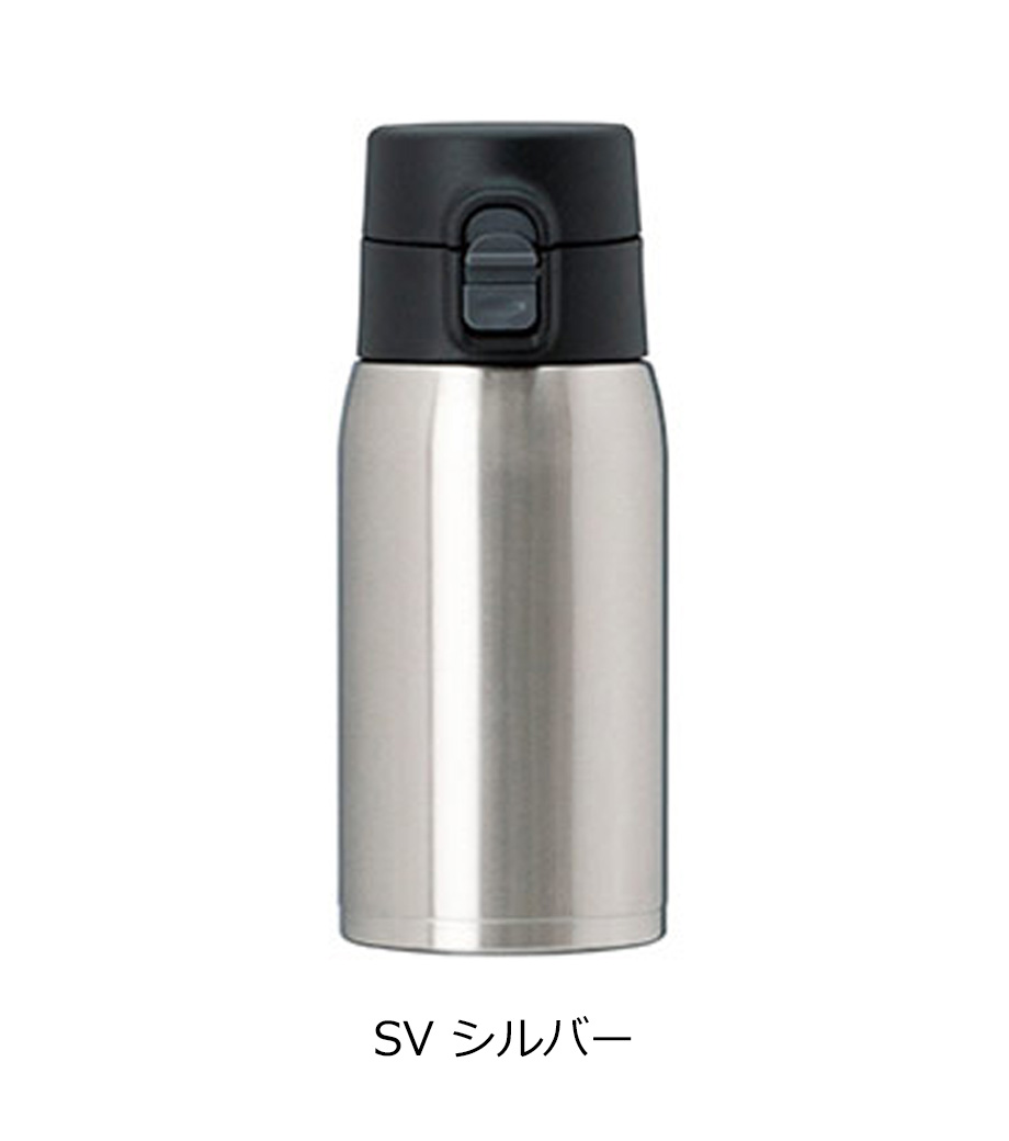 ワンタッチカービングサーモボトル360mlは、片方の手で簡単に開閉出来るワンタッチボトルです。口元にフィットする小さめの飲み口で、飲みやすい仕様。急いでいても水分補給できます。飲み口にロック機能付いているので安心してバッグに入れられます。