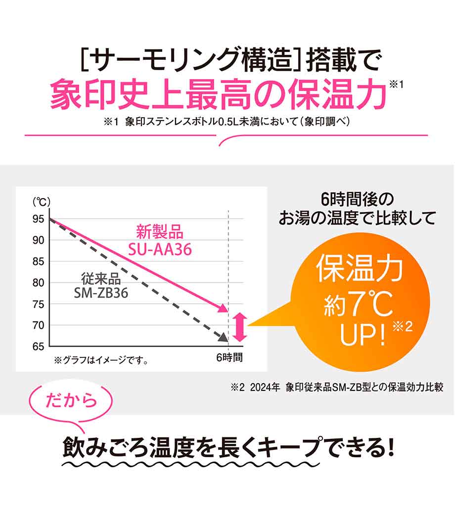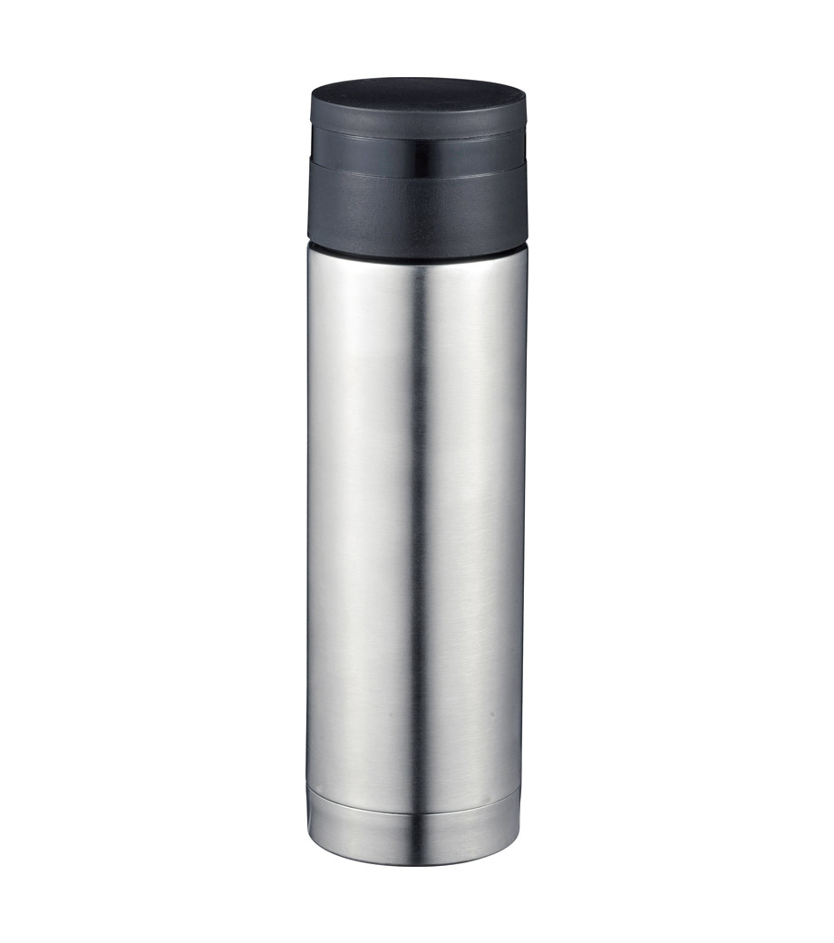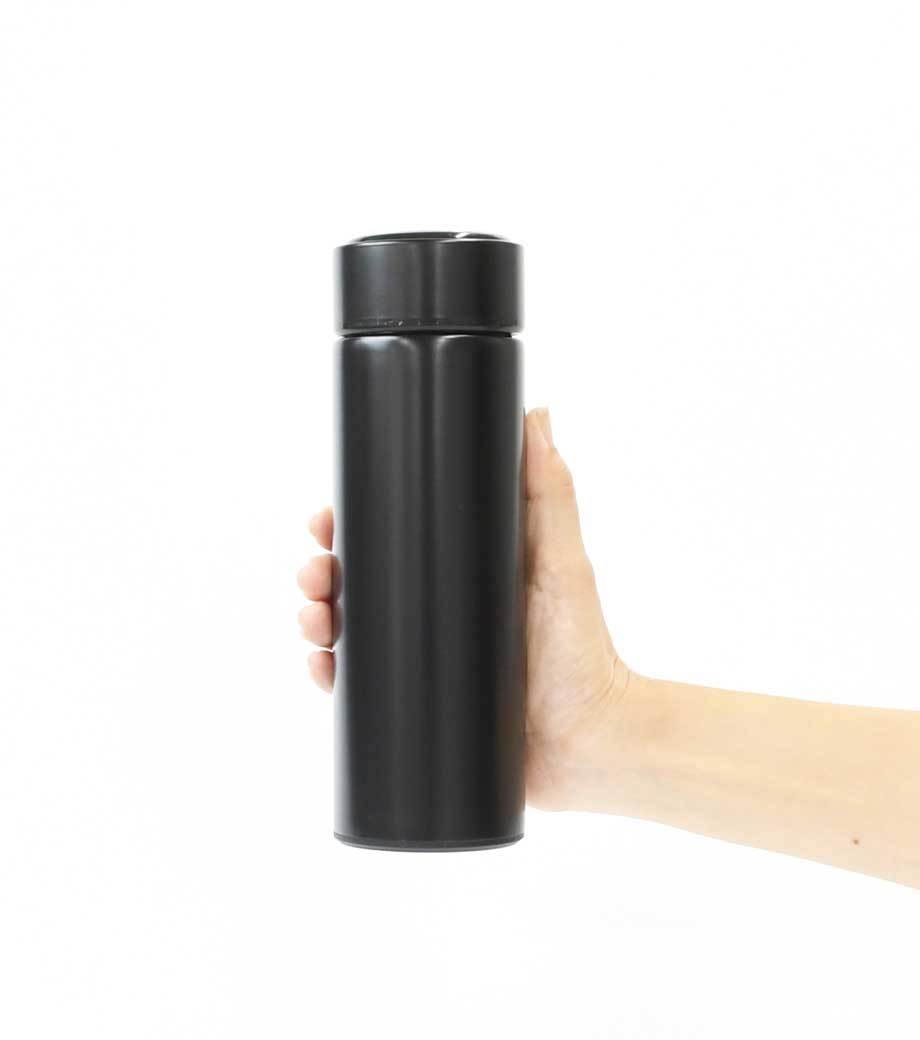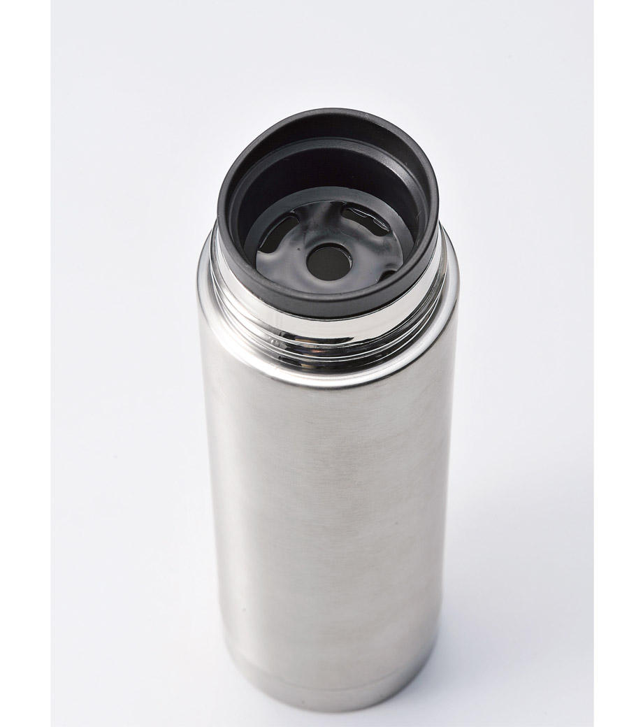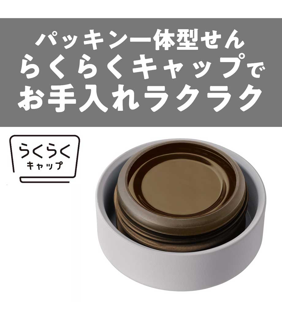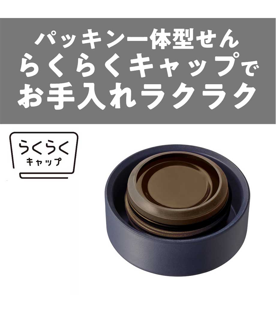 ステンレス製の真空サーモボトルで保冷温効果が高く、温かいものは温かく、冷たいものは冷たいまま持ち歩けます。