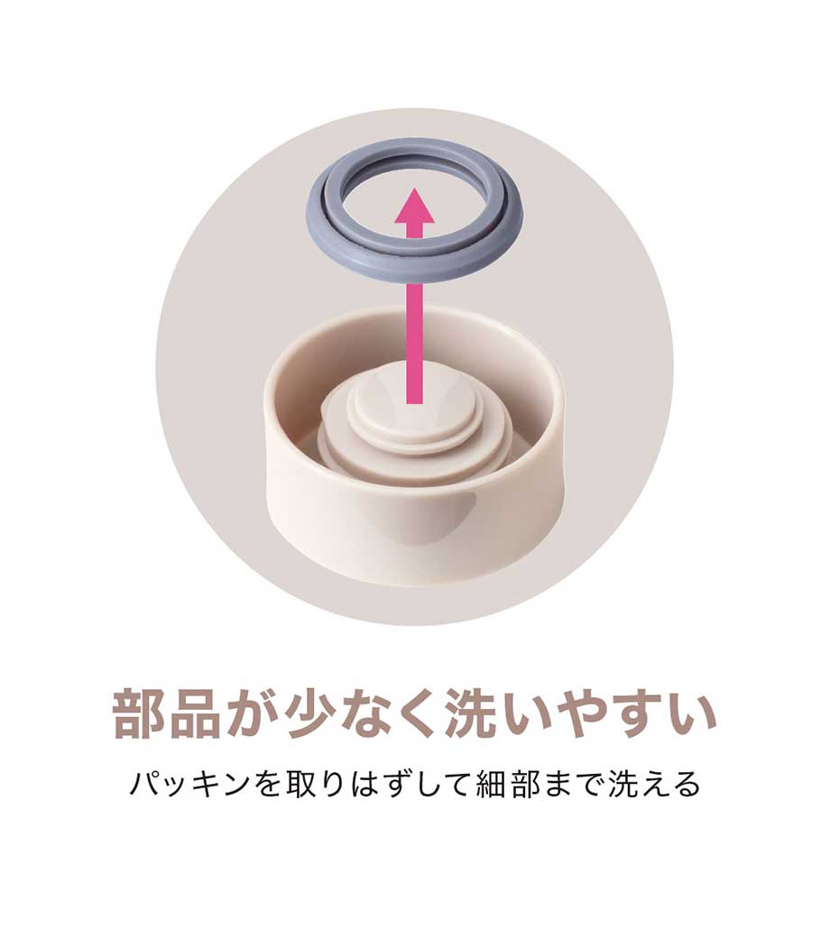 パッキン一体型で洗いやすい!