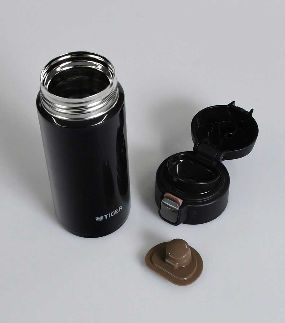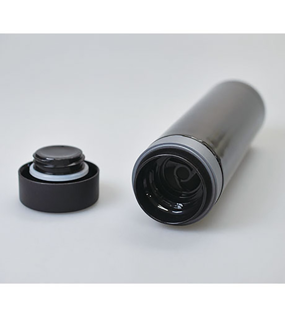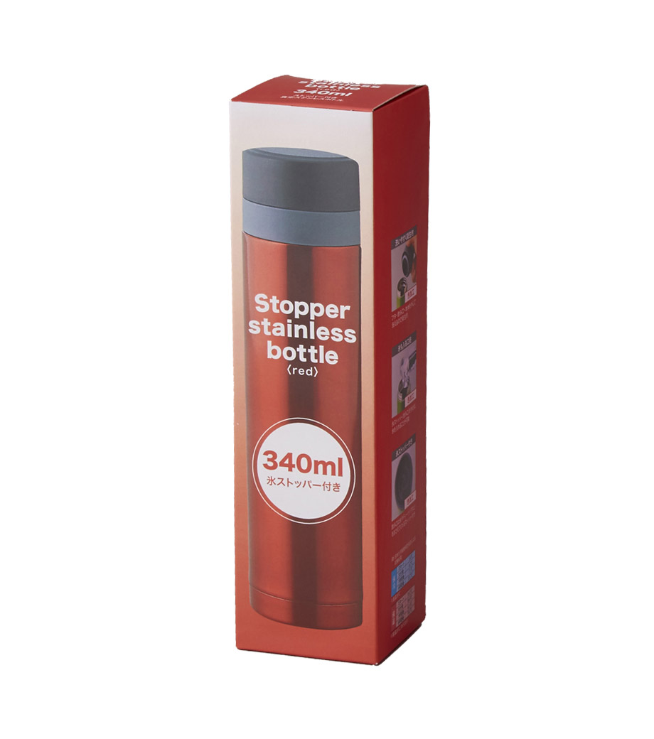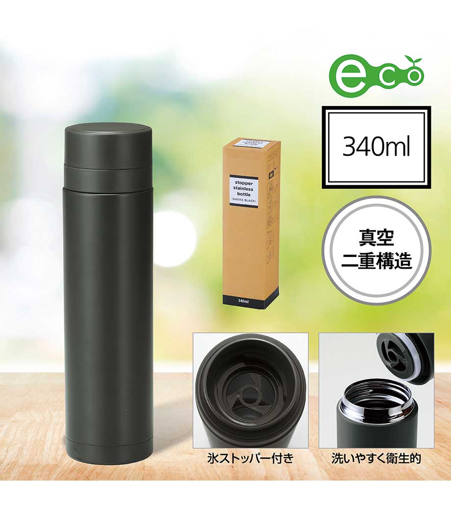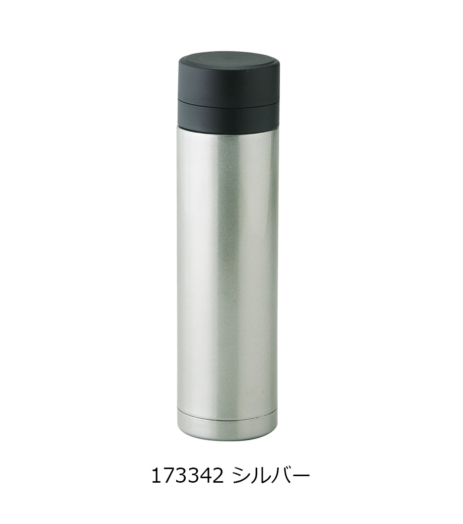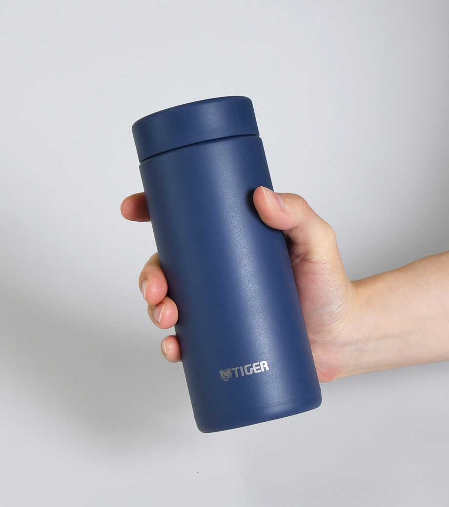 小型の缶やペットボトル飲料がそのまま入る340mlの容量。真空ステンレスだから飲み物の保冷温もバッチリで、JIS規格に基づく試験済みです。飲み口を外すと、氷も入る口径で機能的にも優れています。氷やティーバッグを抑えるストッパー付き。フタ、飲み口、本体は外して洗え衛生的です。