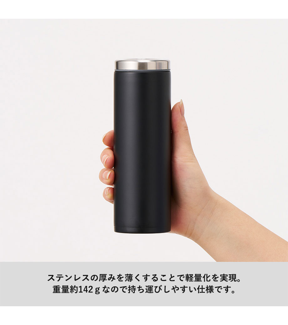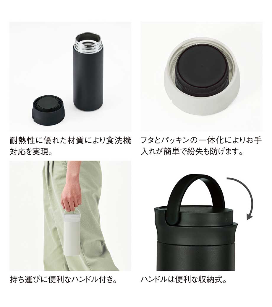 お手入れもしやすい構造で持ち運びにちょうどよい340mlの容量は普段使いはもちろん、通勤・通学や外出にも活躍すること間違いなしです。