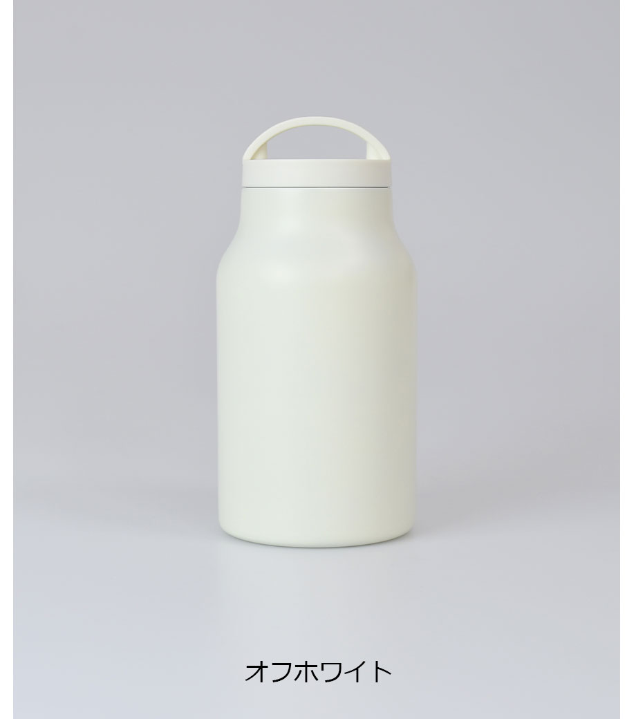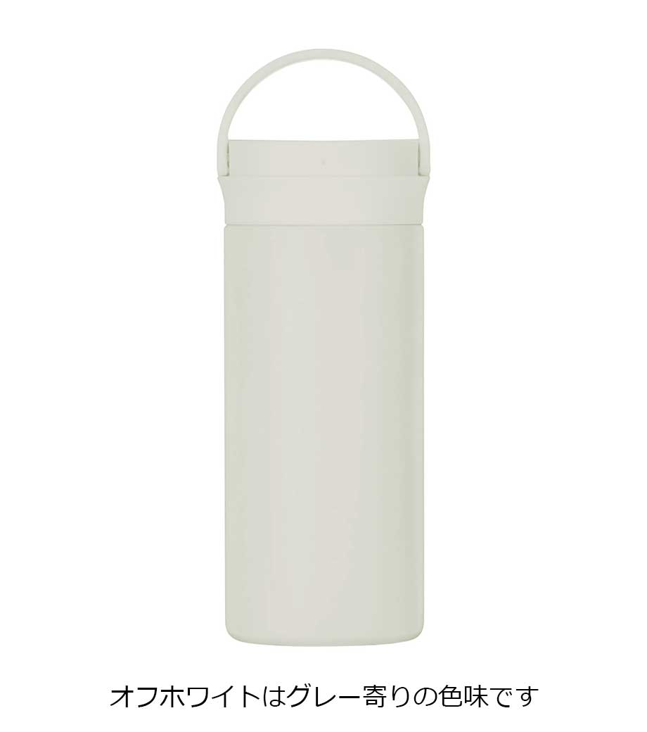 保冷温効果に優れた真空二重構造で、容量350mlのステンレスボトルです。氷が入れやすい広めの飲み口。シンプルな構造だからお手入れも簡単です。スクリュータイプのキャップにはハンドル付。バッグから取り出しやすく、オフィスなど移動時の携帯にも便利です。