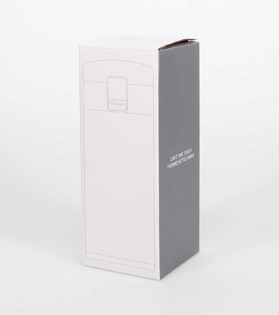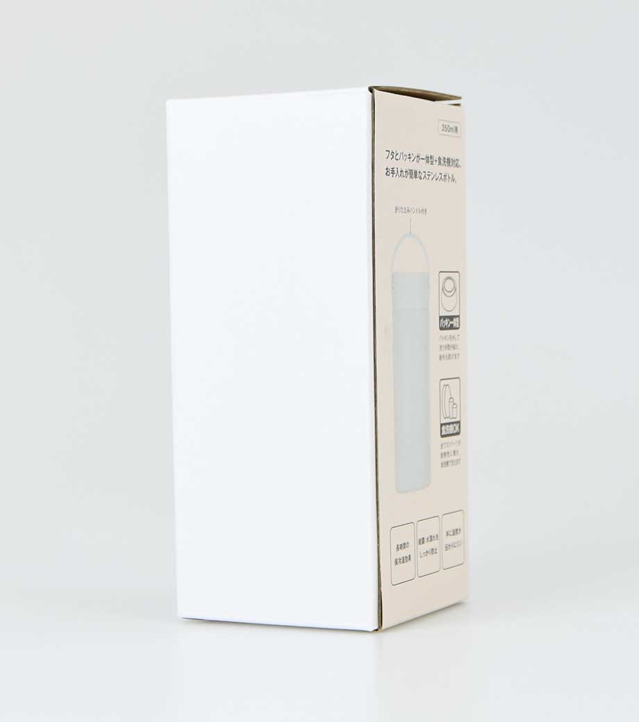 名入れが映えるホワイトのボトル部分に、1色でロゴや企業名を印刷できます。化粧箱入りで熨斗や包装にも対応。アウトドアショップの購入特典や、スポーツ大会の記念品におすすめのノベルティです。