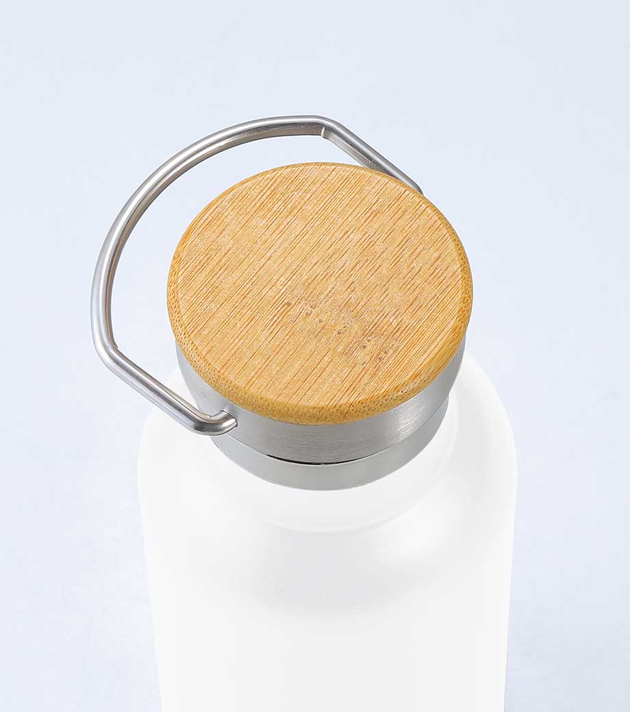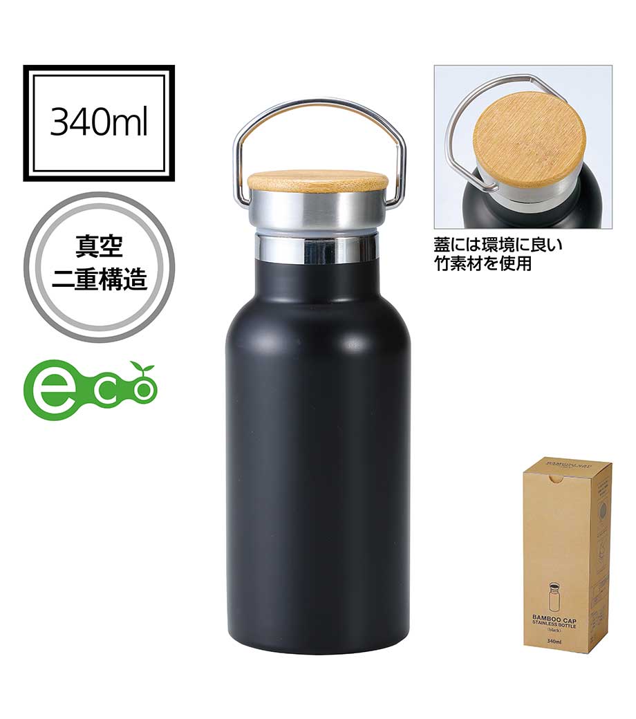 温かみあるバンブーキャップとボトルに1色印刷ができます。丸みのあるフォルムで可愛いオリジナルボトルが作れます。キャンペーンのノベルティなどにおススメです。