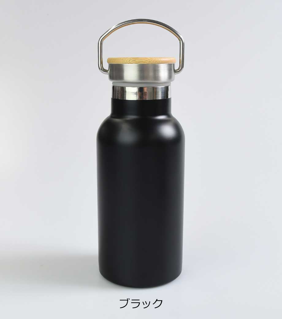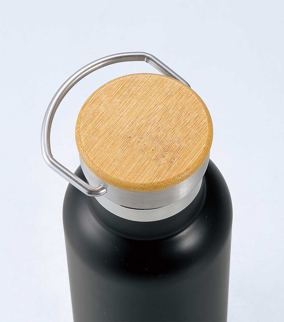バンブー素材のふたが特徴のボトルです。シンプルカラーのミルク瓶型ボトルに、ナチュラルな竹製のふたの組み合わせが温もりのあるデザインです。持ち手付きで使い勝手も抜群。真空二重構造のステンレスボトルだから、保冷・保温効果ももちろんばっちりです。
