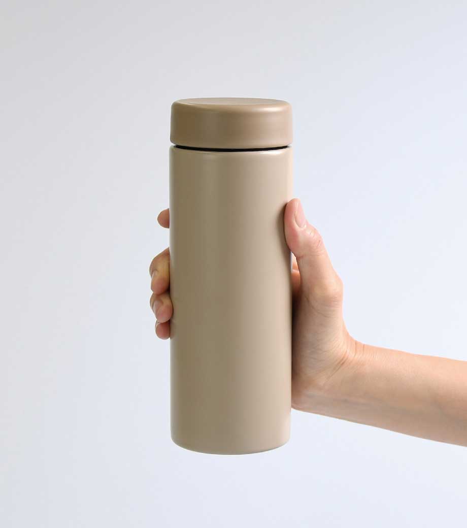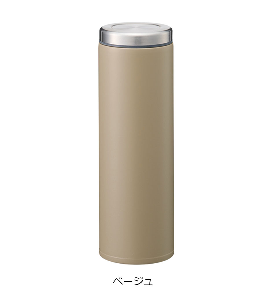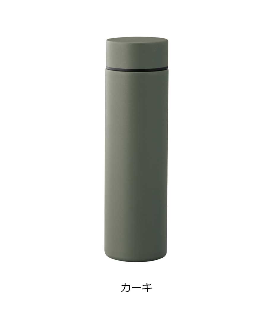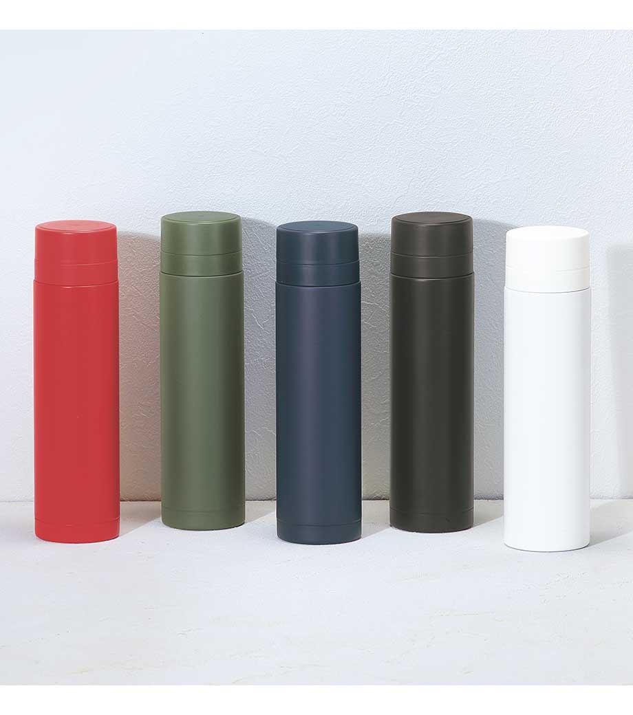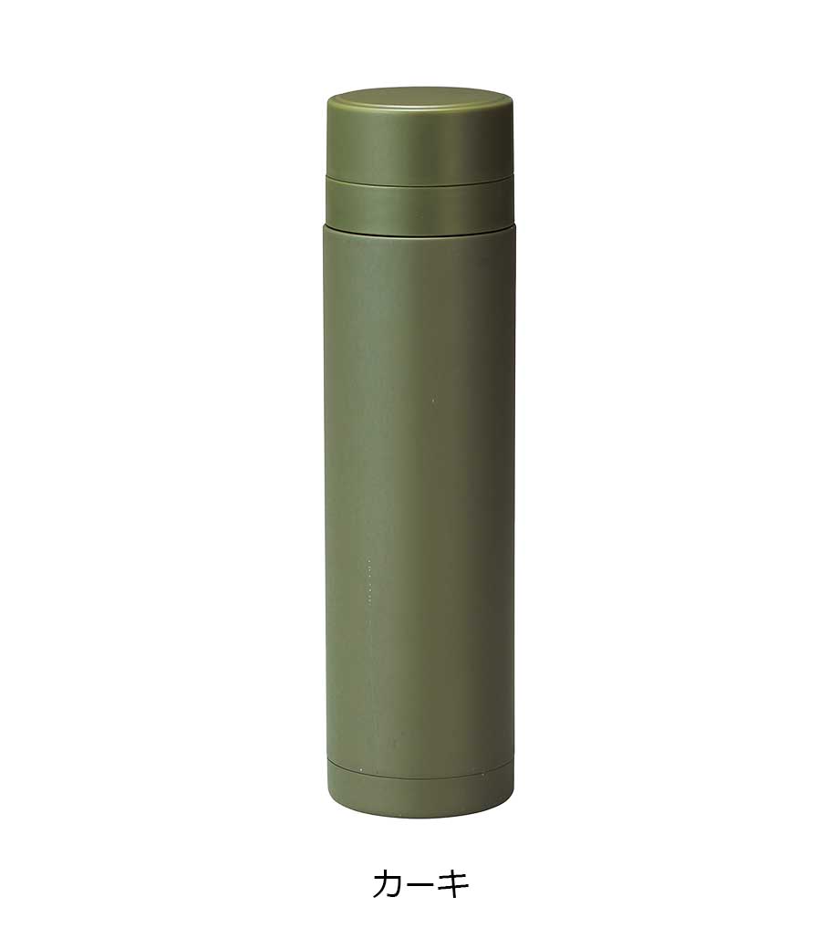スティックサーモボトルver.2はスタイリッシュなデザインの真空二重構造。保冷温力が高く、飲みごろを長時間キープできます。細身のスリムタイプで容量は約350ml。アースカラーを意識したカラーバリエーションです。