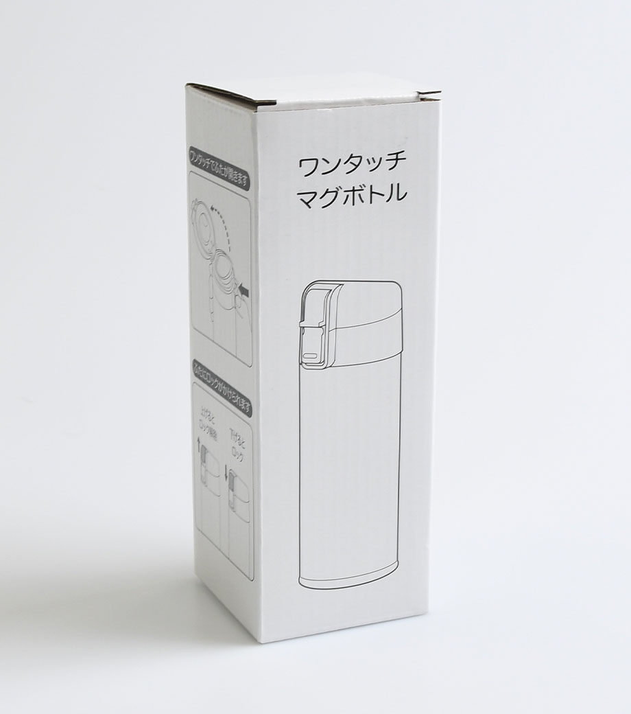 本体はツヤっと光沢のあるホワイトカラー。シンプルで名入れ印刷が映えます。記念品制作やオリジナルグッズ制作にいかがでしょうか。