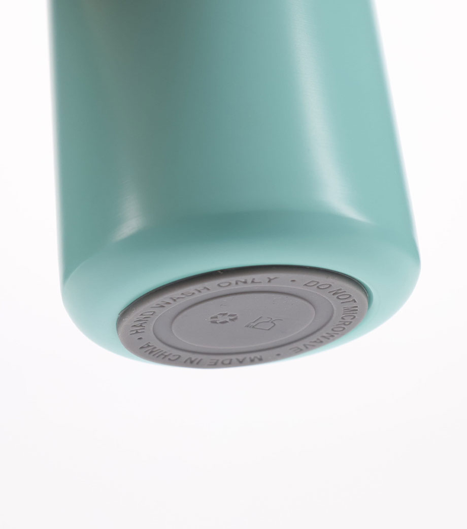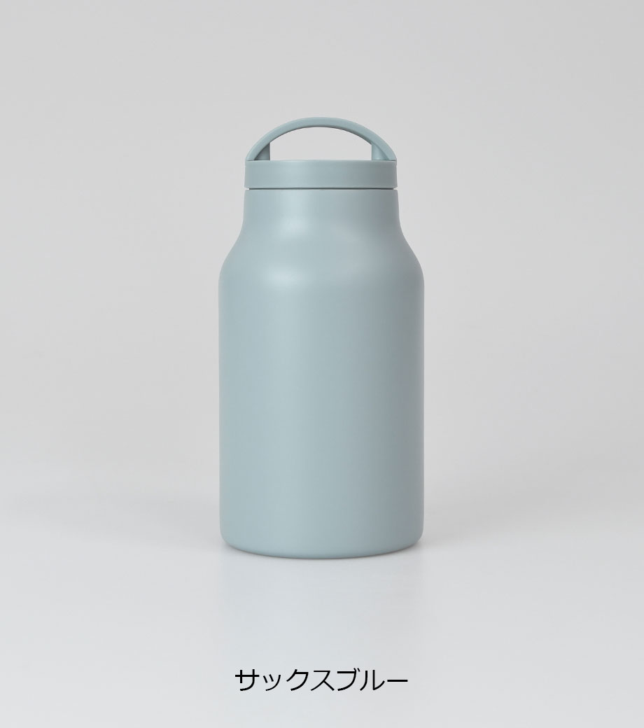 表面がパウダーコーティングしてある真空二重構造のボトル。滑りにくく濡れた手でもしっかり持つことができて保冷温もバッチリです。持ち歩きにもちょうどいい容量約350mlです。氷止め兼パッキンは簡単に取り外せてお手入れも楽チン!ハンドルは折りたためて、携帯にも便利。デザイン性と機能性を併せ持つ人気商品です。