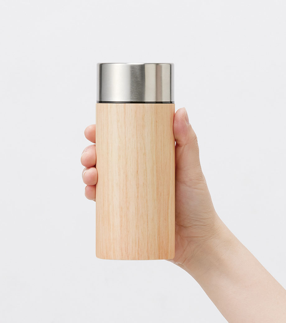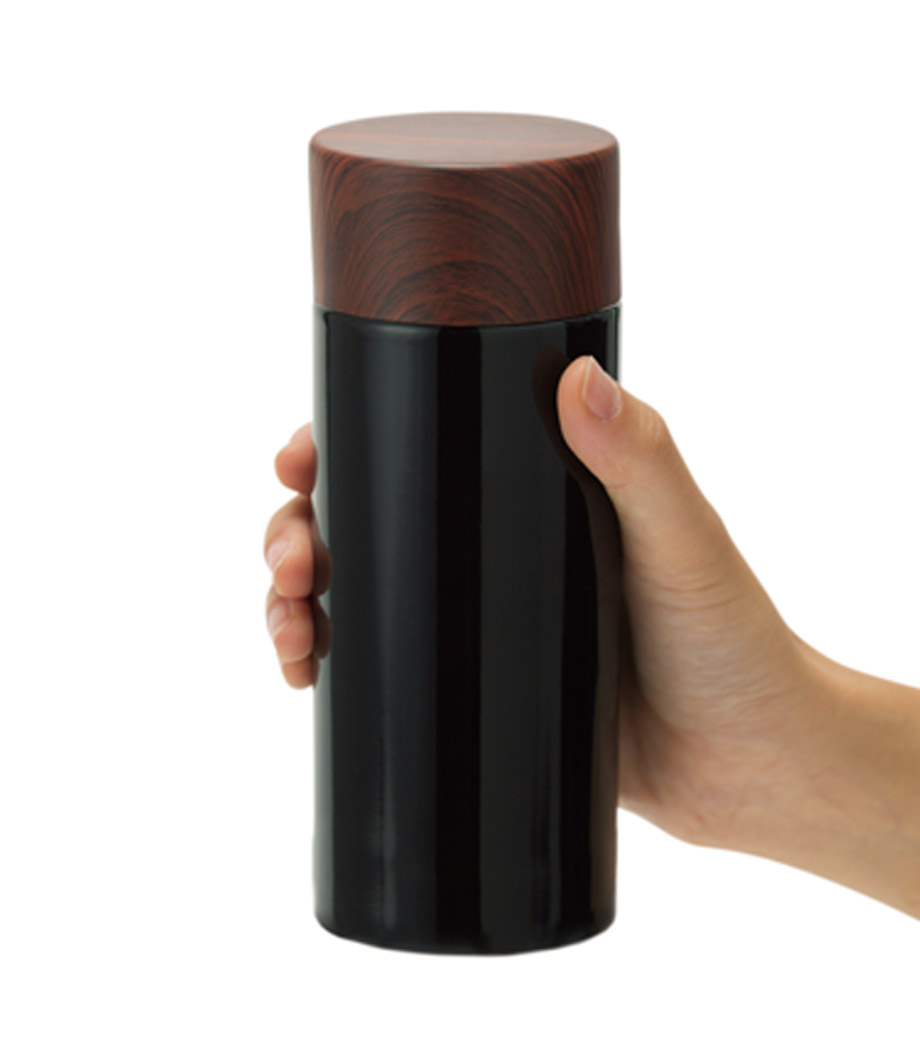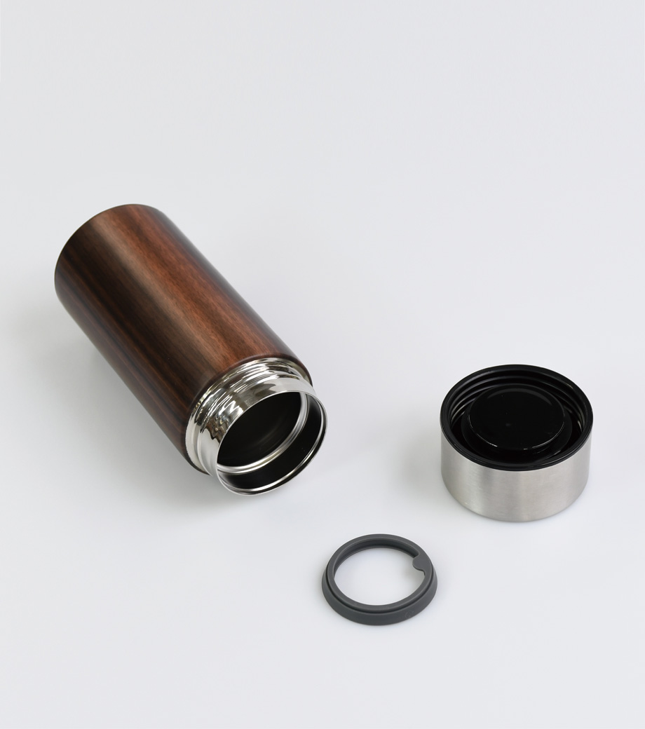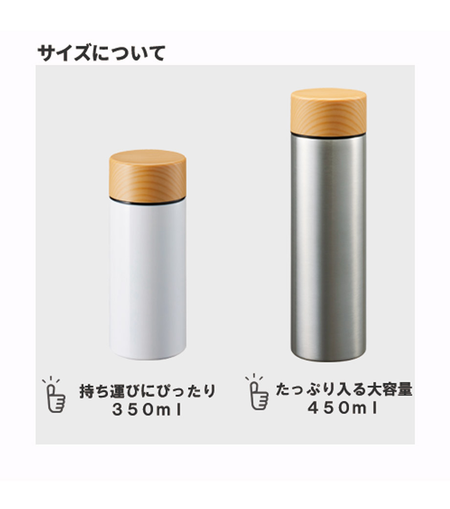 木目調サーモステンレスボトル 300mlは、木目調のキャップがお洒落なサーモボトル。キャップとボトル部分に印刷ができます。