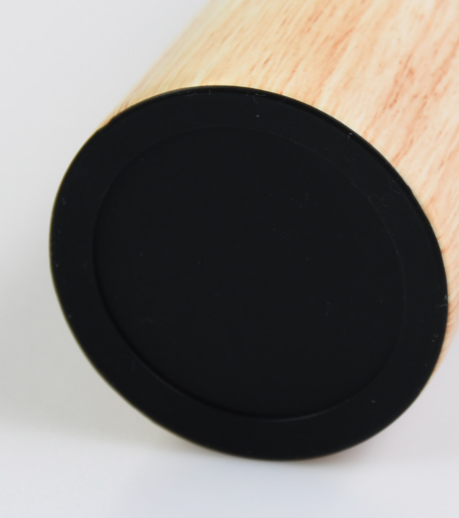 木目調のキャップはホワイトとシルバーには明るめ、ブラックには濃いめとボトルカラーに合わせた色味。シンプルなカラーが木目調のデザインと相まって、大人かわいいデザインです。