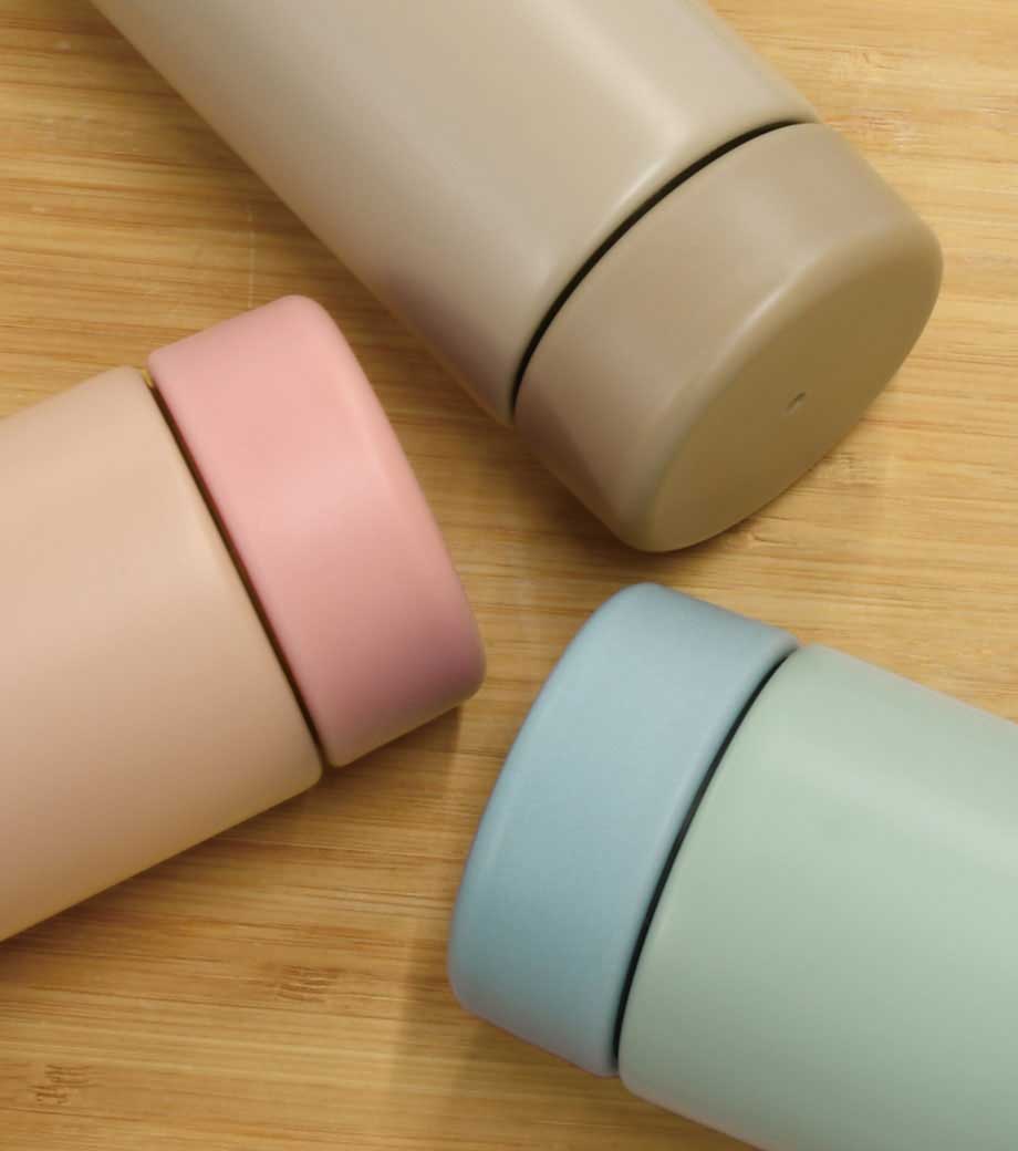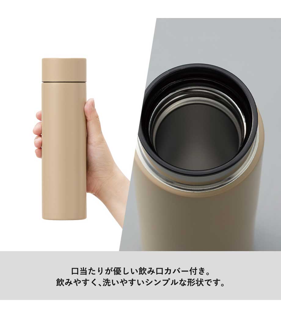 シンプルサーモステンレスボトル370mlは保冷保温に優れた真空二重構造。直のみできる飲み口には口当たりがソフトなカバー付きです。ランチタイムやオフィスなど様々なシーンでご利用いただけます。人気のアースカラーの6色から選べます。