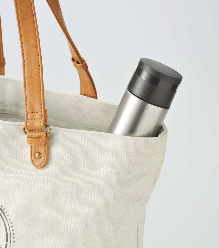 側面にワンポイントか広範囲で1色印刷できます。ブランドロゴや学校名を名入れするだけで、おしゃれなノベルティに仕上がりますよ。カフェのオリジナルグッズや卒業記念品などにもおすすめです。