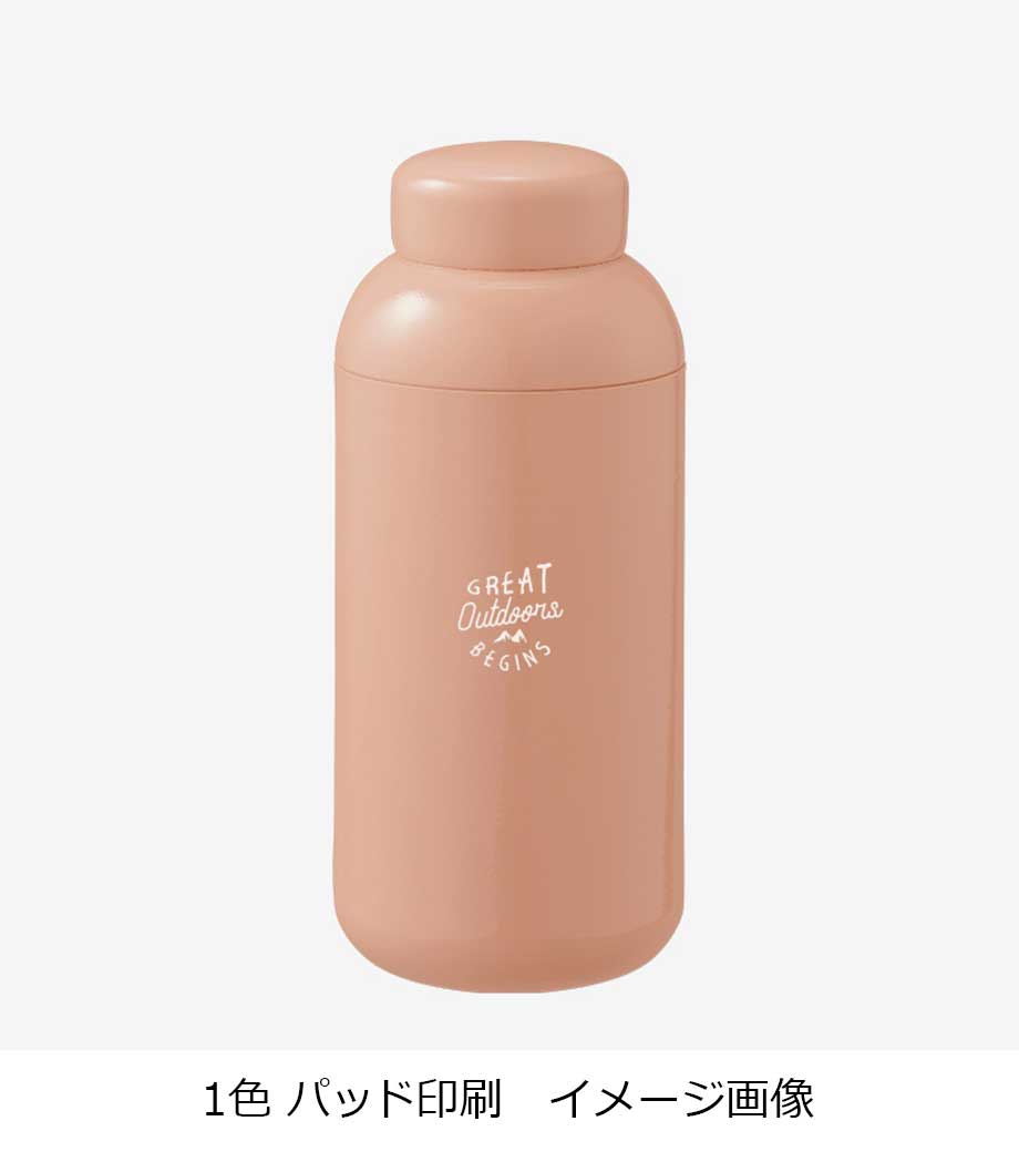 本体に1色印刷が可能。コーヒーショップの限定マイボトルやコンサートツアーグッズとしていかがですか?人気のくすみカラーに他とは一味違った形のボトルは、オリジナル感たっぷりのノベルティが作れます。