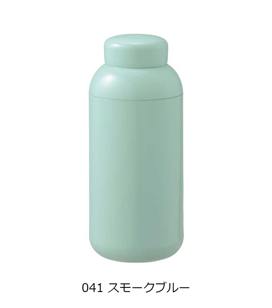 真空2重構造のステンレスボトル。特徴はなんといっても国内最軽量級約189gという軽さ!ステンレスを薄くすることで軽量化、その分空気層は厚くなり保冷温効果はきちんとキープしています。曲線ラインのフタや、くすみカラーがどことなく優しいデザインです。