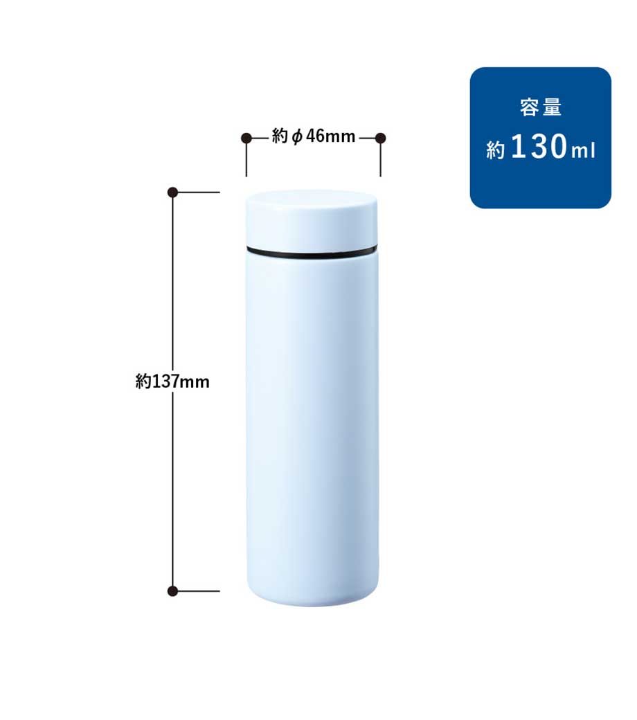 保冷保温効果もバッチリ!ちょっとの量だけ持ち歩きたい時に便利な容量130mlです。お散歩途中や外出先での水分補給に便利です。