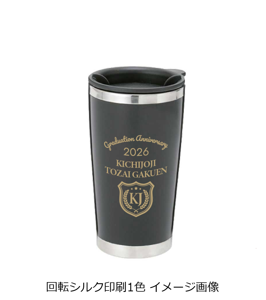 広範囲にぐるっと印刷できる回転シルク印刷の名入れにも対応しています。企業ロゴを印刷してノベルティやキャンペーンの販促品にするなど、オリジナルタンブラー作りにおすすめです。