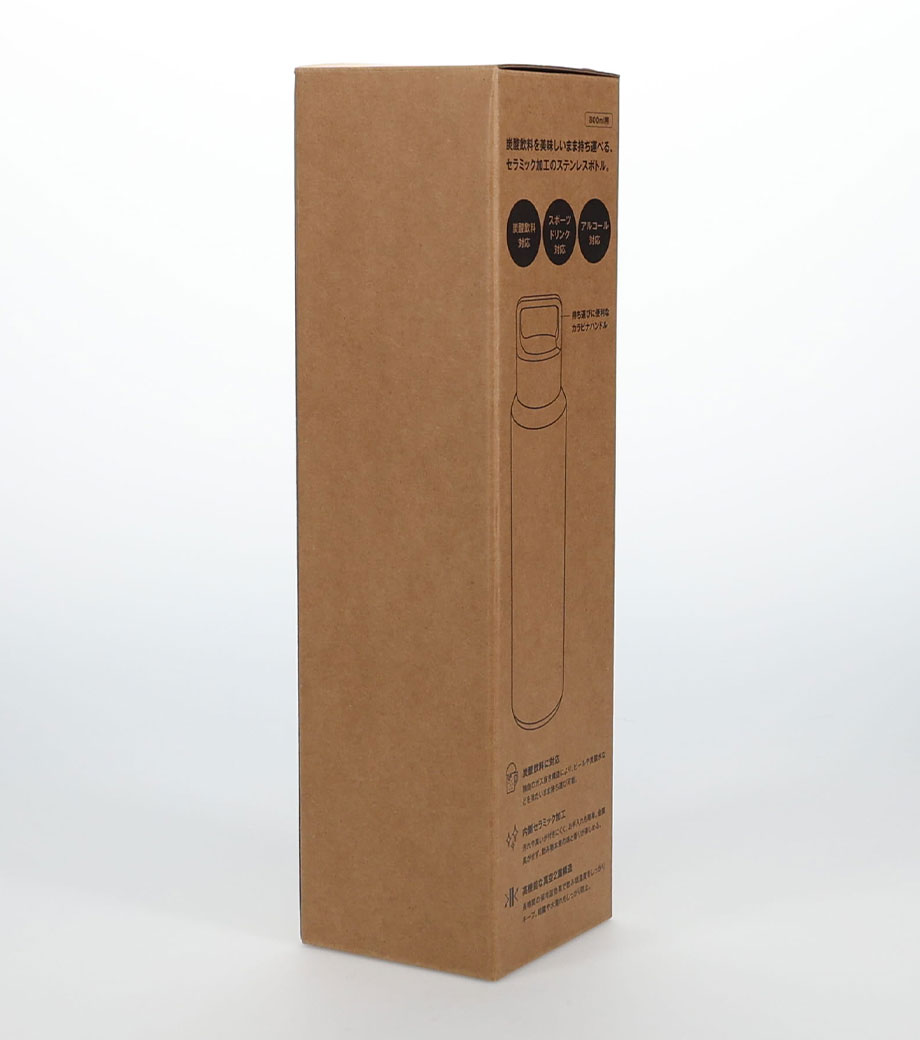 名入れが映えるホワイトのボトル部分に、1色でロゴや企業名を印刷できます。化粧箱入りで熨斗や包装にも対応。アウトドアショップの購入特典や、スポーツ大会の記念品におすすめのノベルティです。