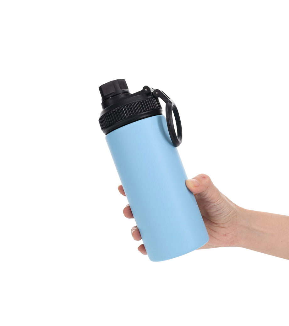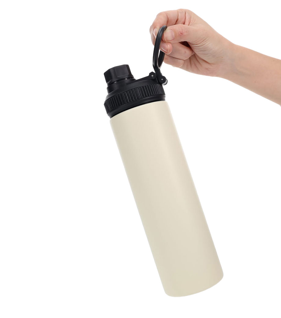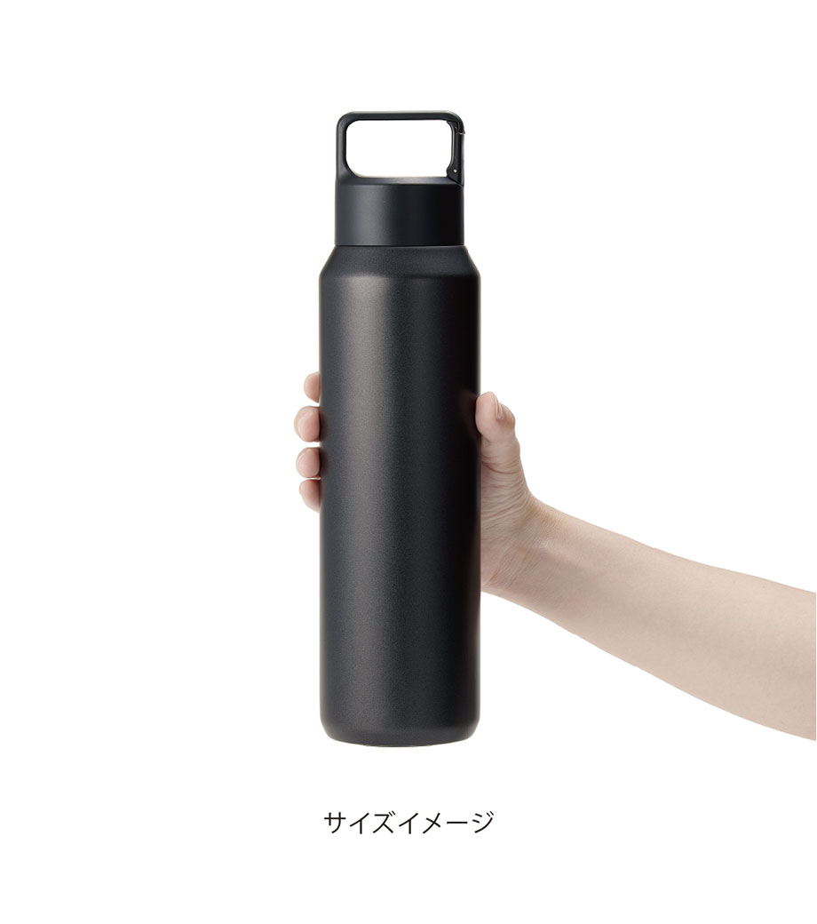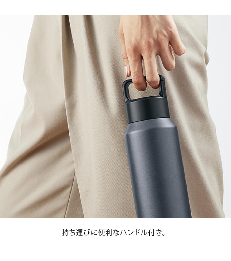 直飲みタイプの保温・保冷ステンレスボトル。容量約600mlで、日常使いからアウトドアやスポーツシーンまで幅広く使えます。本体は手に馴染みやすいパウダーコーティング仕様。携帯しやすい持ち手ハンドル付きです。フタはスクリュータイプで開けたらすぐ飲める手軽さが嬉しいポイントです。