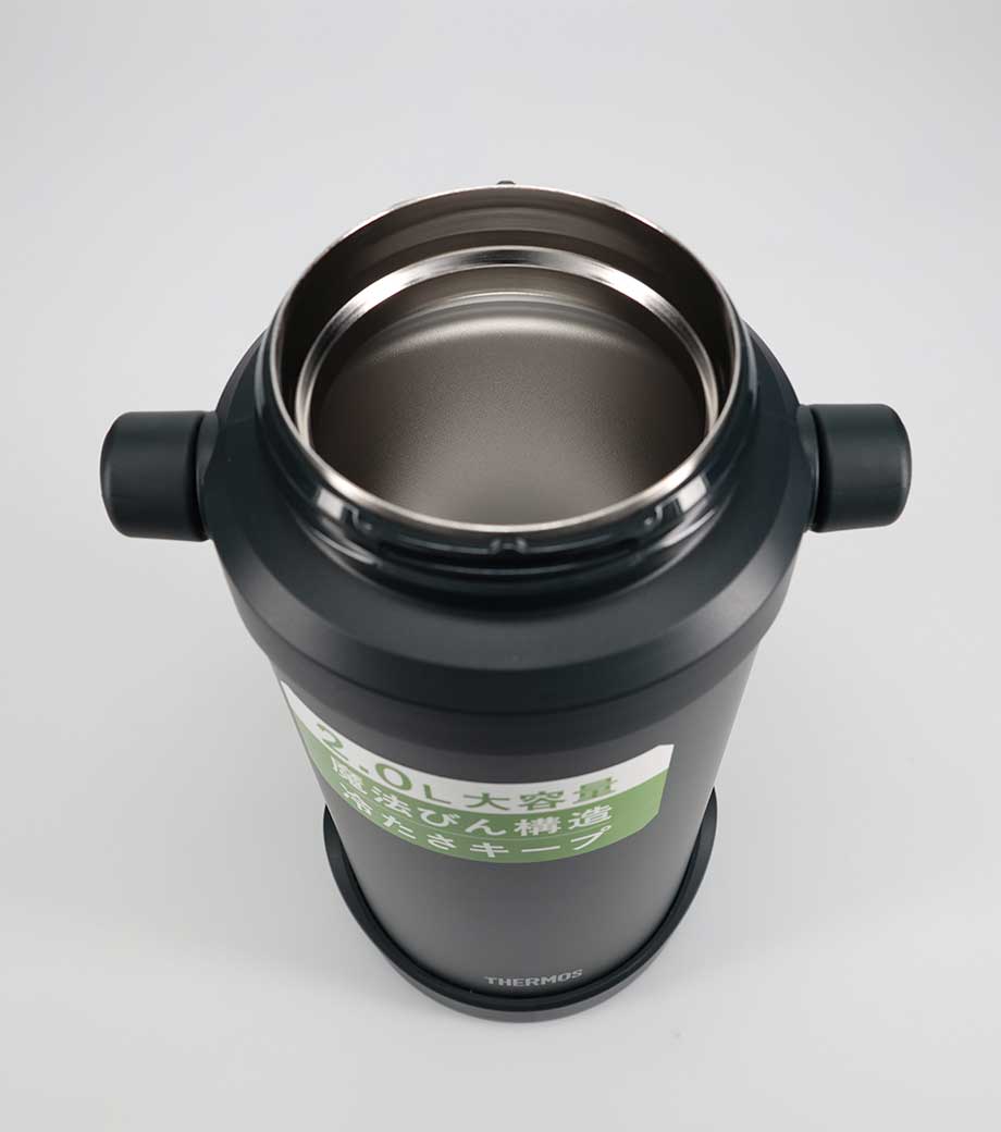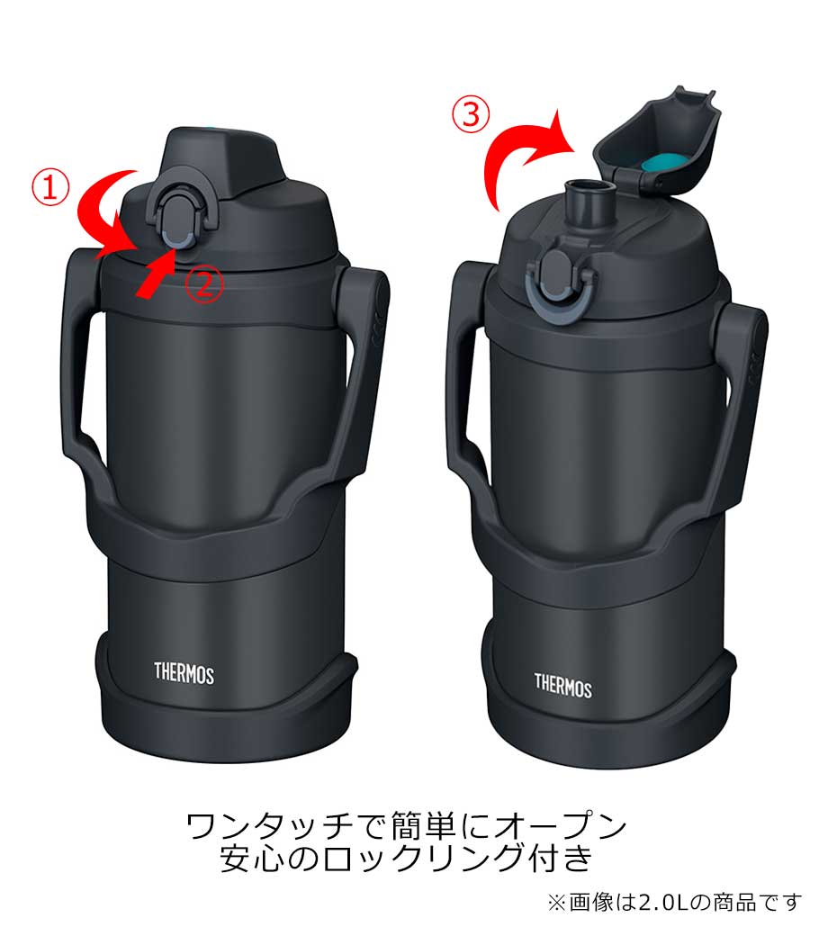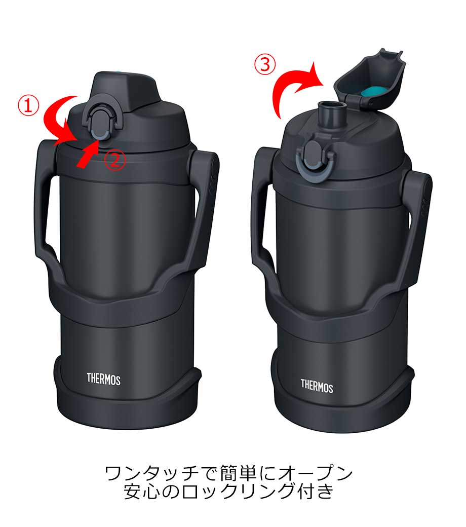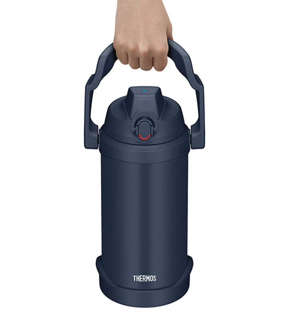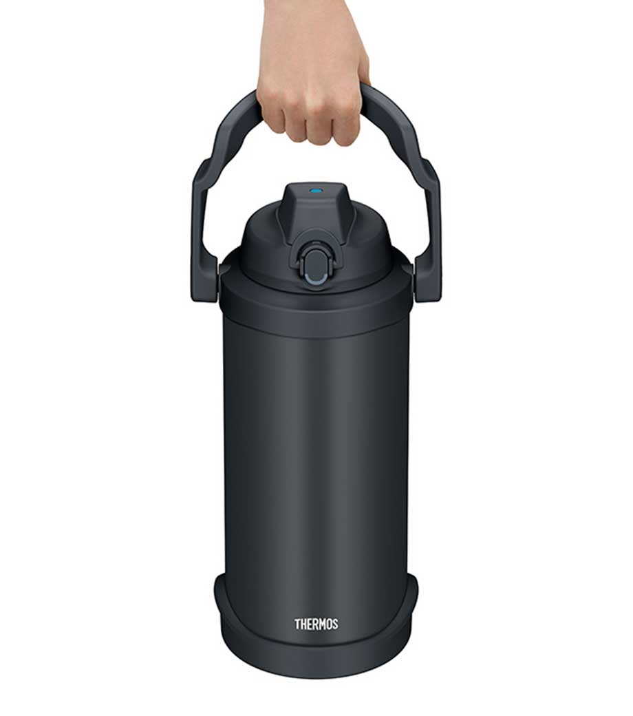 大容量でも持ち運びやすい、ハンドル付きの保冷ジャグです。約2.0Lでスポーツ時の水分補給にしっかり対応。魔法びん構造により冷たさをキープします。ワンタッチで開けて直飲みでき、両手で支えて飲める「ラク持ちハンドル」仕様です。大きな氷も入ってお手入れしやすい広口設計。キャップユニットは食洗機対応です。