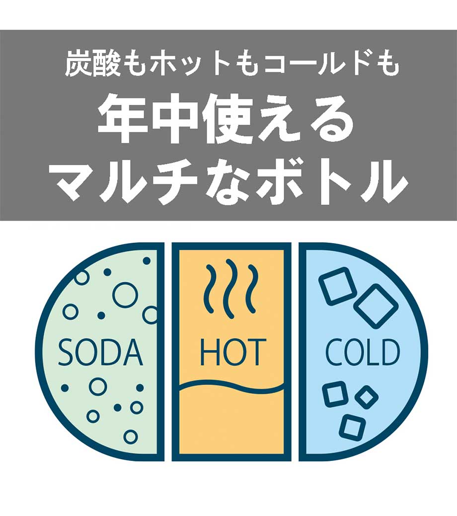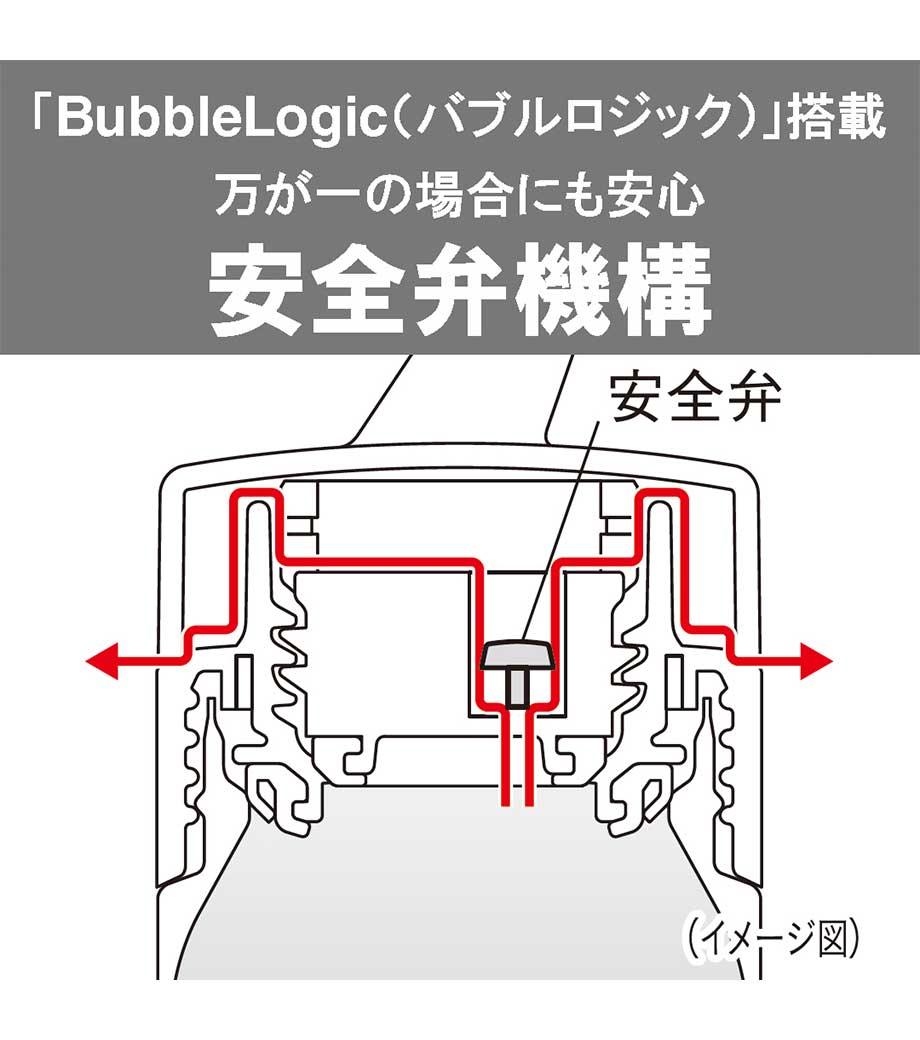 炭酸飲料も安心して持ち運べるステンレスボトルです。内面の「スーパークリーンPlus(プラス)加工」と独自機構の「BubbleLogic(バブルロジック)」が、炭酸の気抜けや噴きこぼれを防いでくれます。真空断熱構造で飲み頃温度をしっかりキープ。丸ごと食洗機対応でお手入れらくちんです。