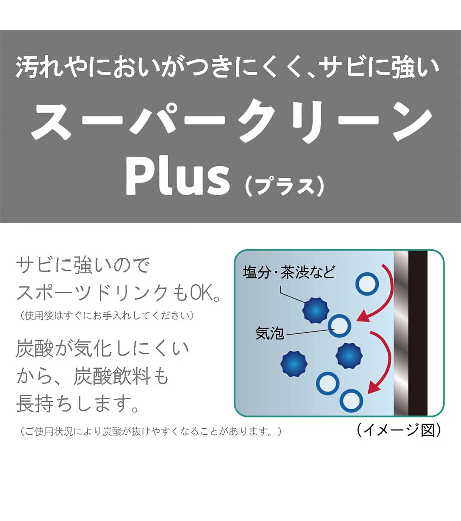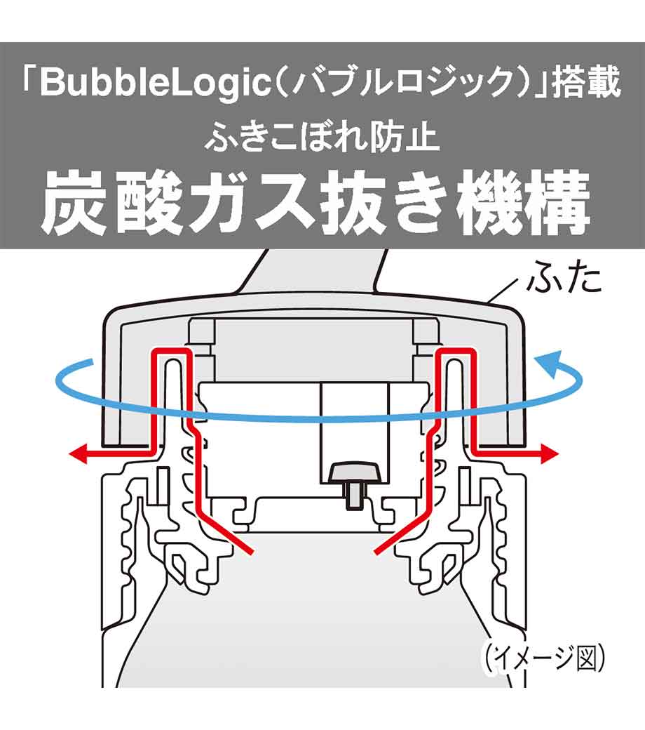 炭酸飲料もOKな真空断熱構造の高機能ボトルです。内面の「スーパークリーンPlus(プラス)加工」により気化を抑え、真空断熱構造で飲み頃温度もしっかりキープ。独自機構の「BubbleLogic(バブルロジック)」で中身の噴きこぼれや飛び散りを防いでくれます。食洗機対応でお手入れも簡単です。