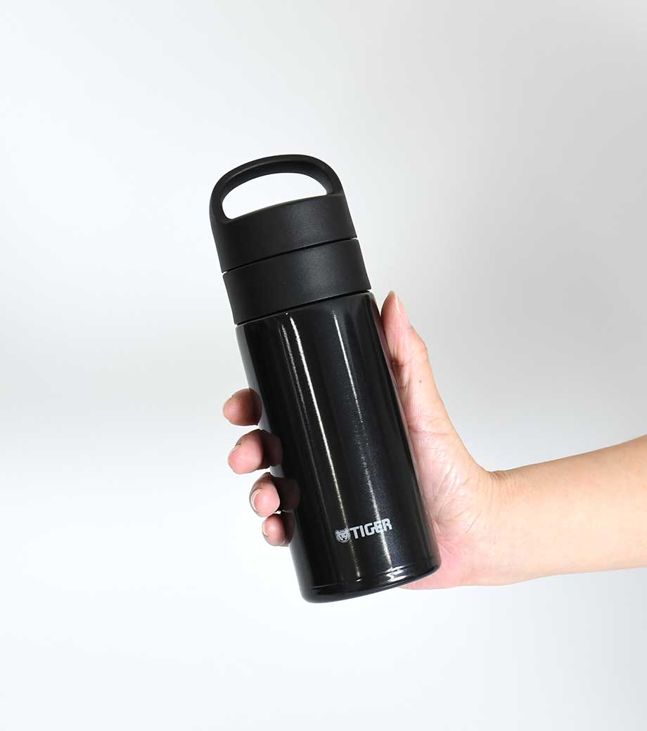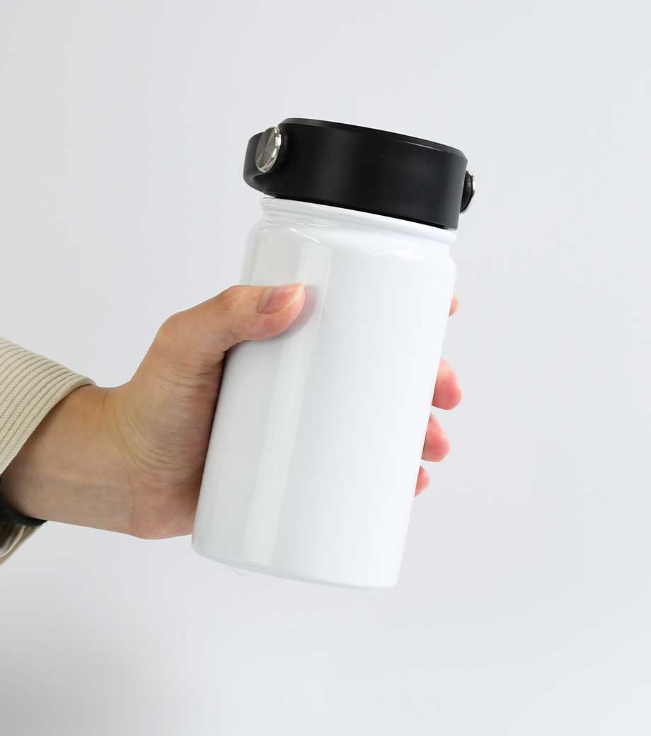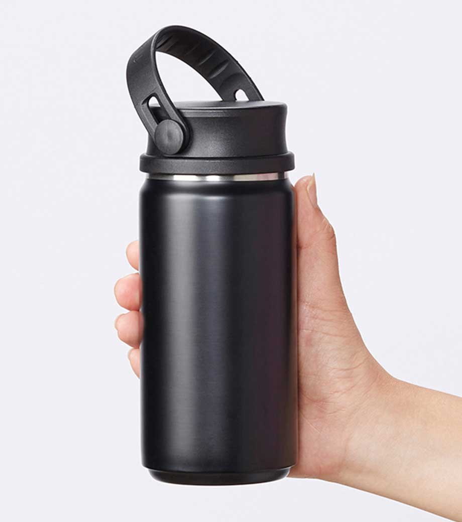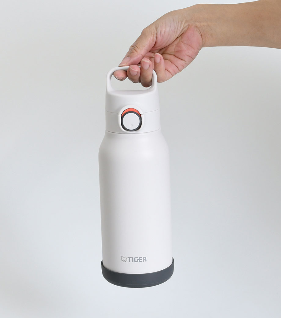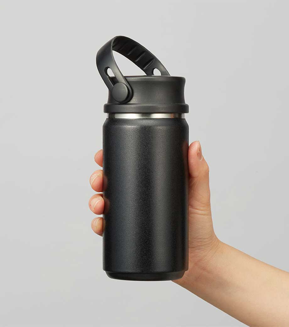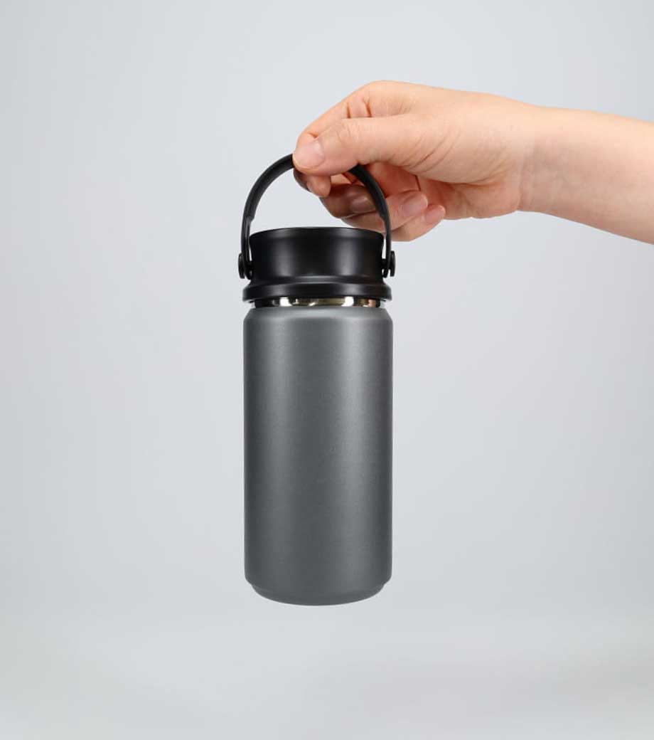 ハンドル付ステンレスボトルは、保冷温効果が高く、飲み頃温度をキープしてくれる真空二重構造。小ぶりのペットボトルと同程度の350mlで、ちょっとしたお出かけにも使いやすい容量です。持ち運ぶのに便利なハンドル付きなので、アウトドアやジムでの水分補給にも使えます。