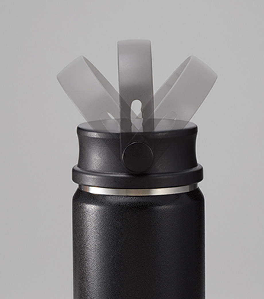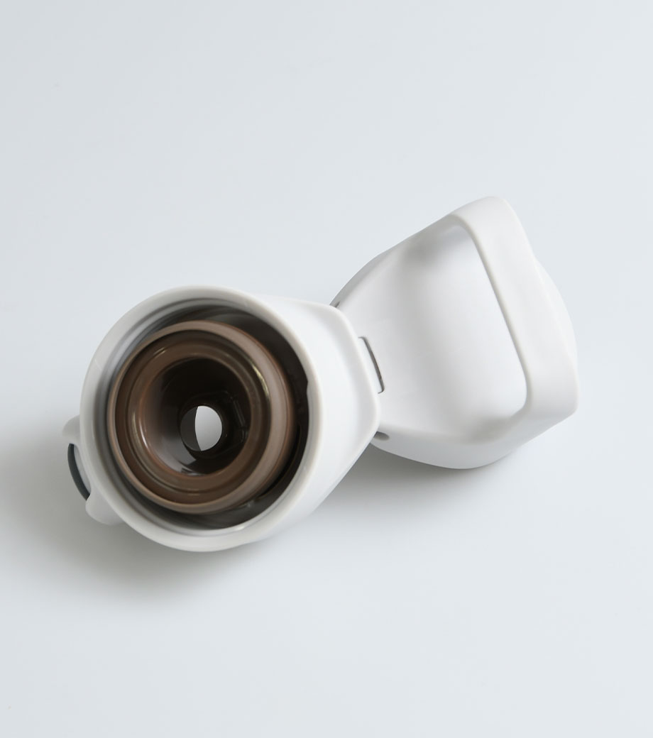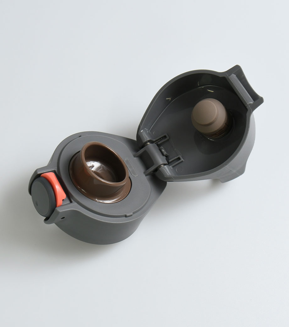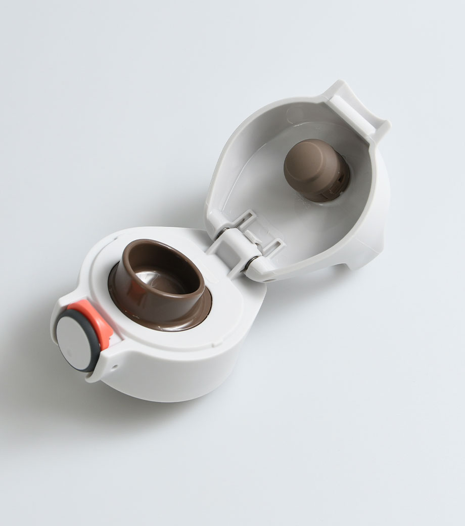 サイズ違いでいくつも試作品を作成し、男女それぞれで飲みやすいと感じるサイズを追求したアイテム。キャップ部分は指を2本引っかけられるようになっており、そのまま回してキャップが外しやすい形です。