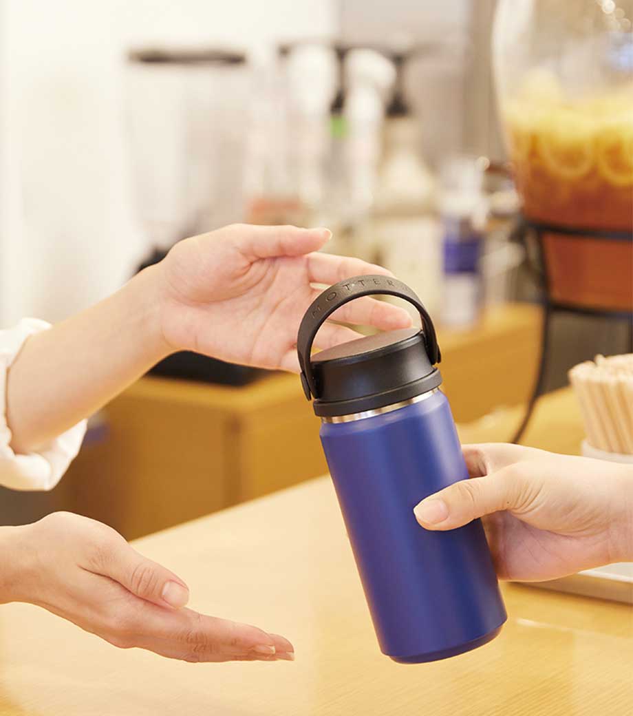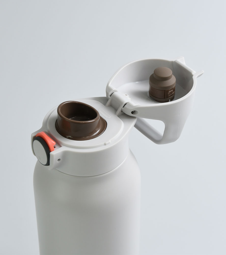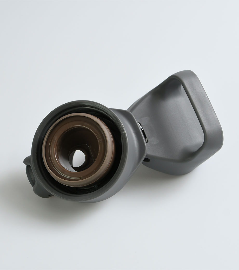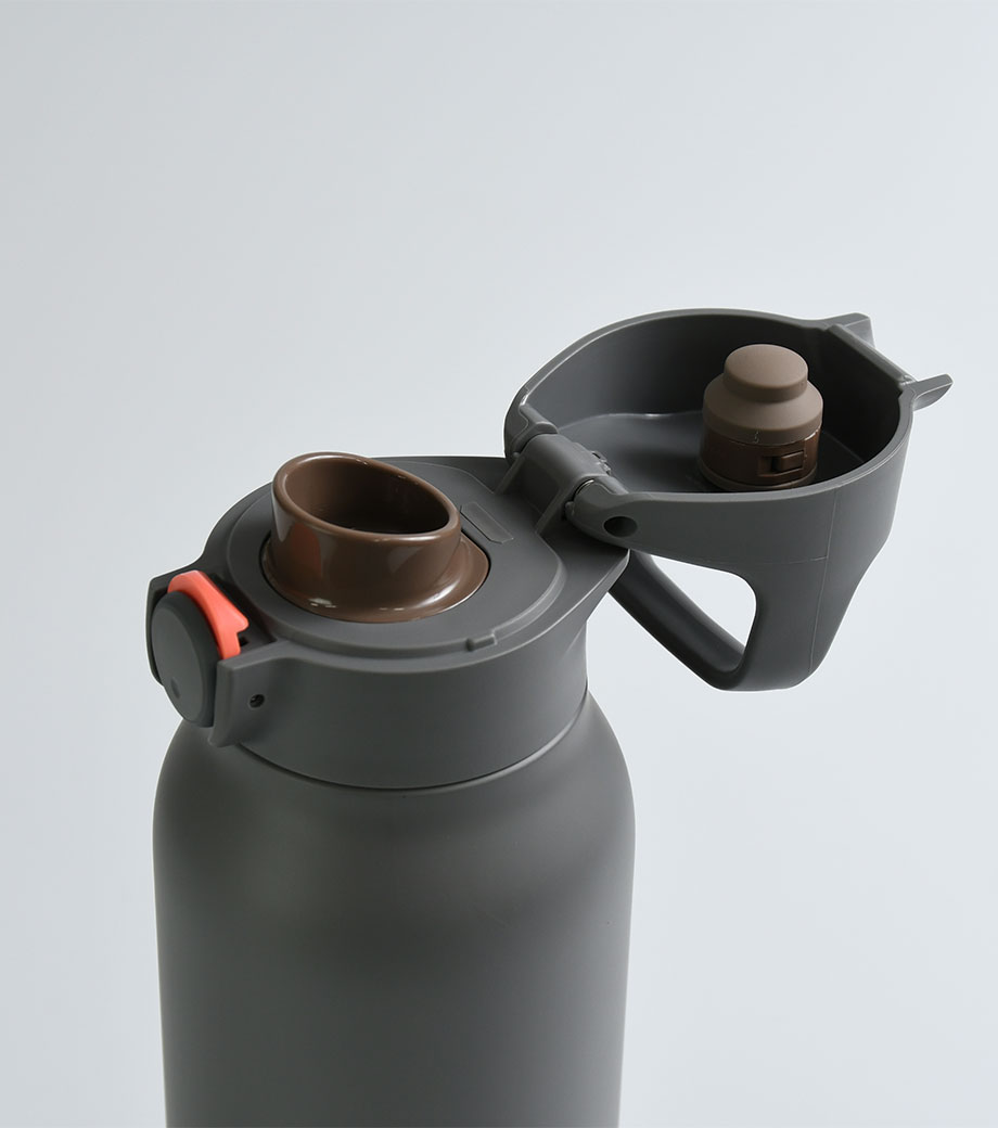 サイズ違いでいくつも試作品を作成し、男女それぞれで飲みやすいと感じるサイズを追求したアイテム。キャップ部分は指を2本引っかけられるようになっており、そのまま回してキャップが外しやすい形です。
