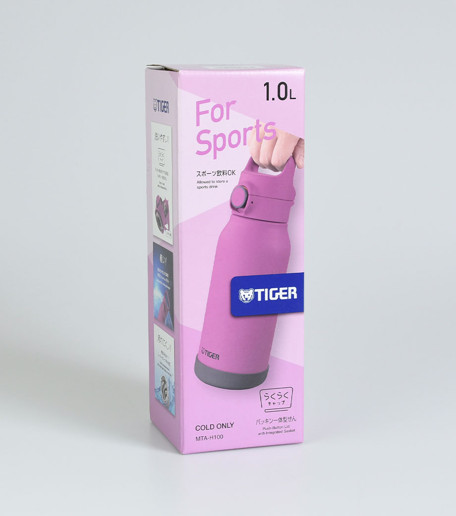 たっぷり水分補給できる約1Lの保冷専用ボトル。持ち運びやすいループが便利。一捻りですぐオープンできる直飲みタイプです。スポーツドリンク対応。広い口径で氷が入れやすく、保冷効果が長持ちします。本体上部と底部にシリコンカバーが付いていて、握りやすく衝撃に強いのが特徴です。