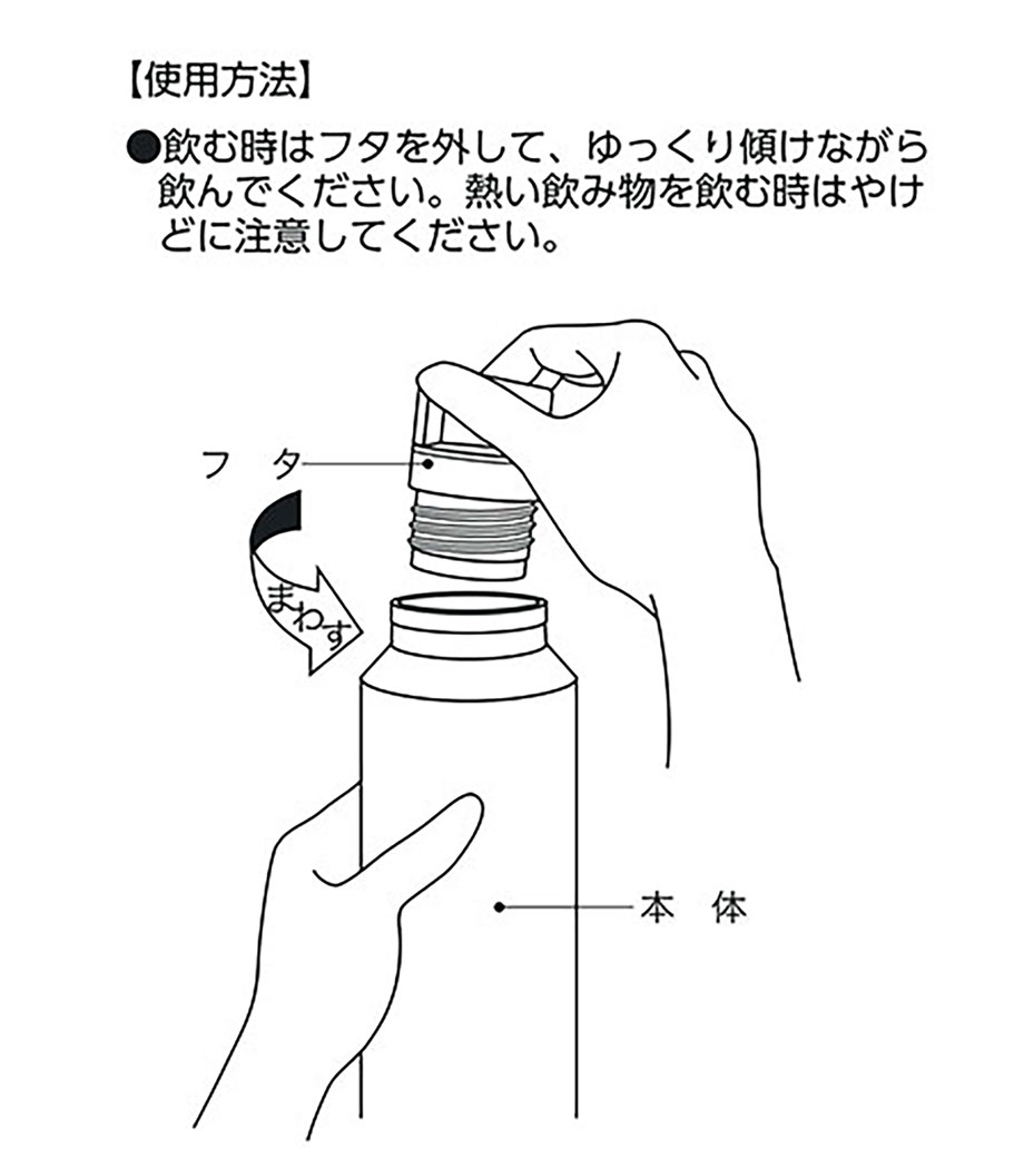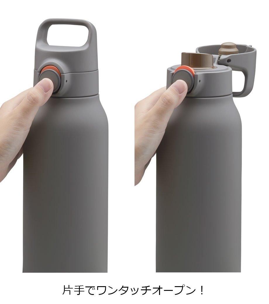 シルバーメタルのハンドルは今まであまり無かったかっこいいデザイン。さらに真空二重構造で保冷保温機能付き。飲むときはフタを回して開けるだけ!お子様でも使いやすい、シンプル構造です。ルックスの良さと実用性の両方を兼ね備えています。