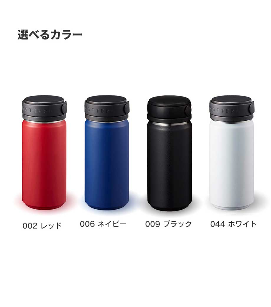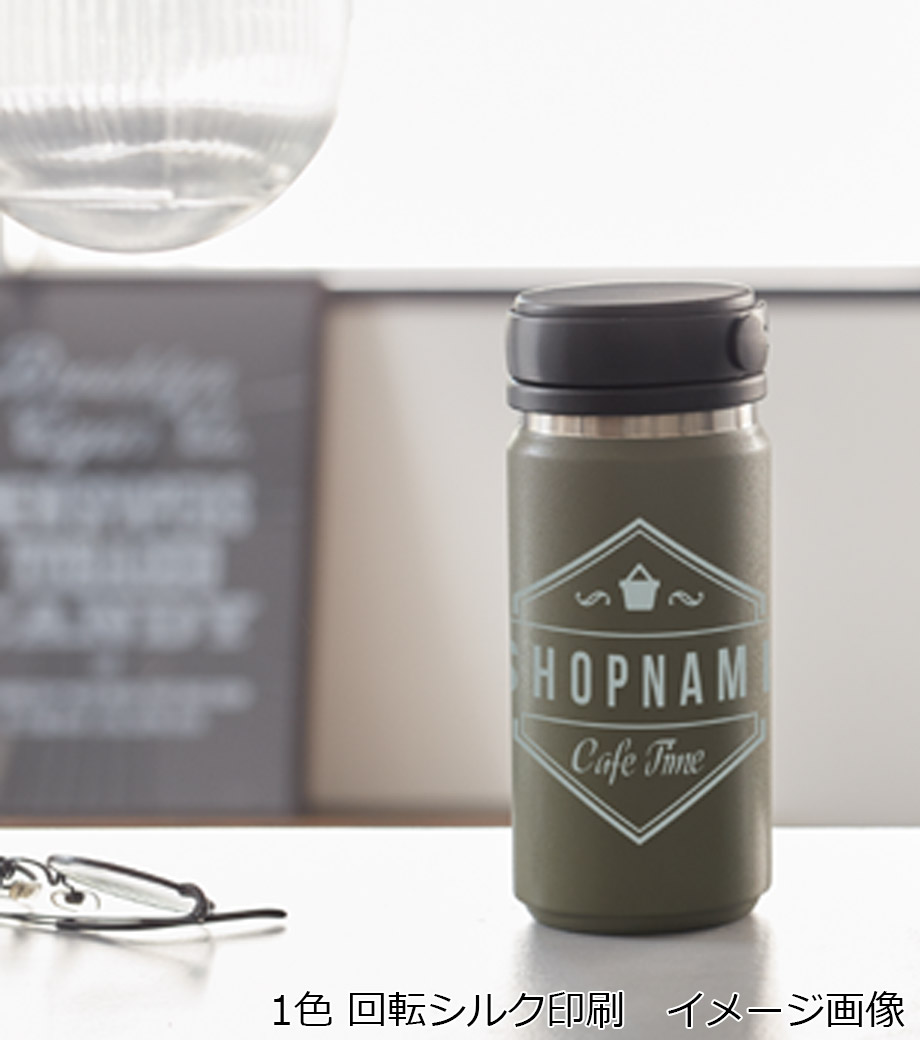 容量360mlはコンパクトで持ち運びやすく、通勤・通学のおともにぴったり。1色印刷やレーザー彫刻で名入れできるので、周年記念品や卒業記念品などにおすすめです。