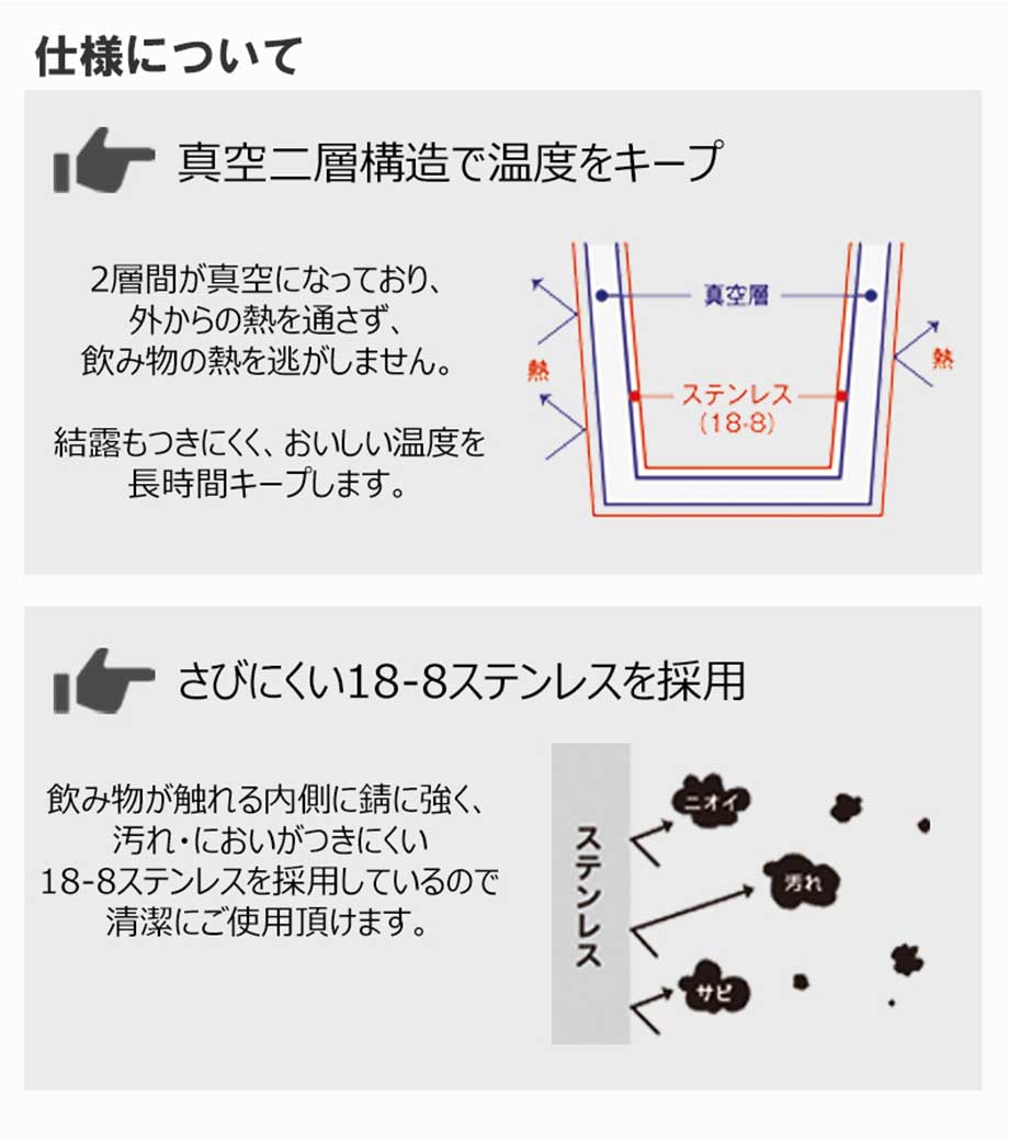 保冷温効果の高い真空二重構造
