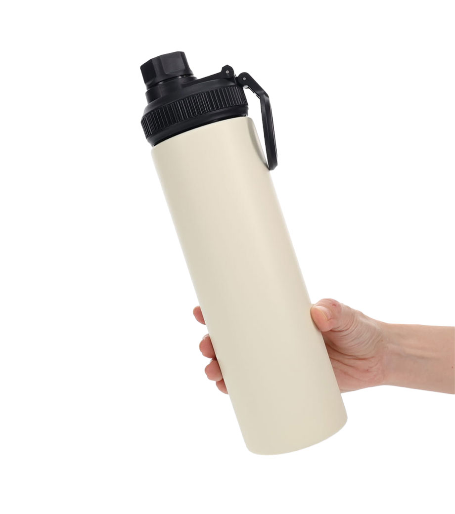 直飲みタイプの保温・保冷ステンレスボトル。容量約800mlで、日常使いはもちろん、長時間の外出やスポーツ、アウトドアシーンにも安心のサイズ感です。本体は手に馴染みやすいパウダーコーティング仕様。携帯しやすい持ち手ハンドル付きで、持ち運びもスムーズです。フタはスクリュータイプで、開けたらすぐ飲める手軽さも魅力。